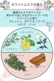 重厚なムスクをベースに爽やかで涼しげなホワイトブーケをイメージした香り フレッシュ ホワイティーブーケ ムスク ノート (ジャスミン ローズ イランイラン シダーウッド サンダルウッド ムスク)