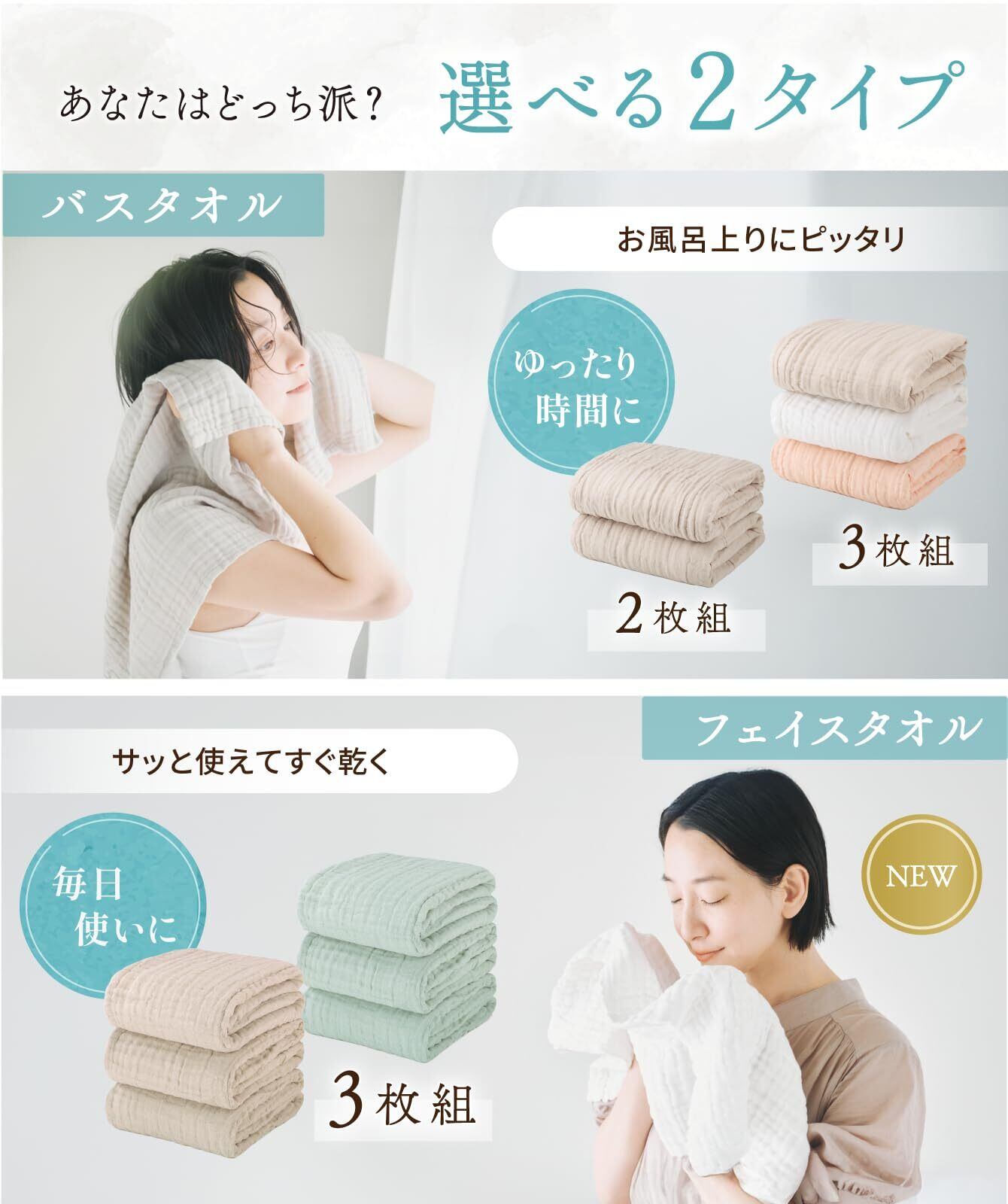 【ご購入前のご注意】 ●素材:綿100%(6重ガーゼ)●サイズ:バスタオル約65×120cm/フェイスタオル約34×80cm(凹凸生地のため多少の誤差あり)●企画・監修:日本 ●生産:中国 ●天然素材の特性上、使い始めは毛羽が出やすい場合がありますが、洗濯を重ねることで落ち着きます ●乾燥機は使用できません(縮みや風合い変化の原因)●洗濯時はネット使用で、やさしい肌ざわりが長持ちします。