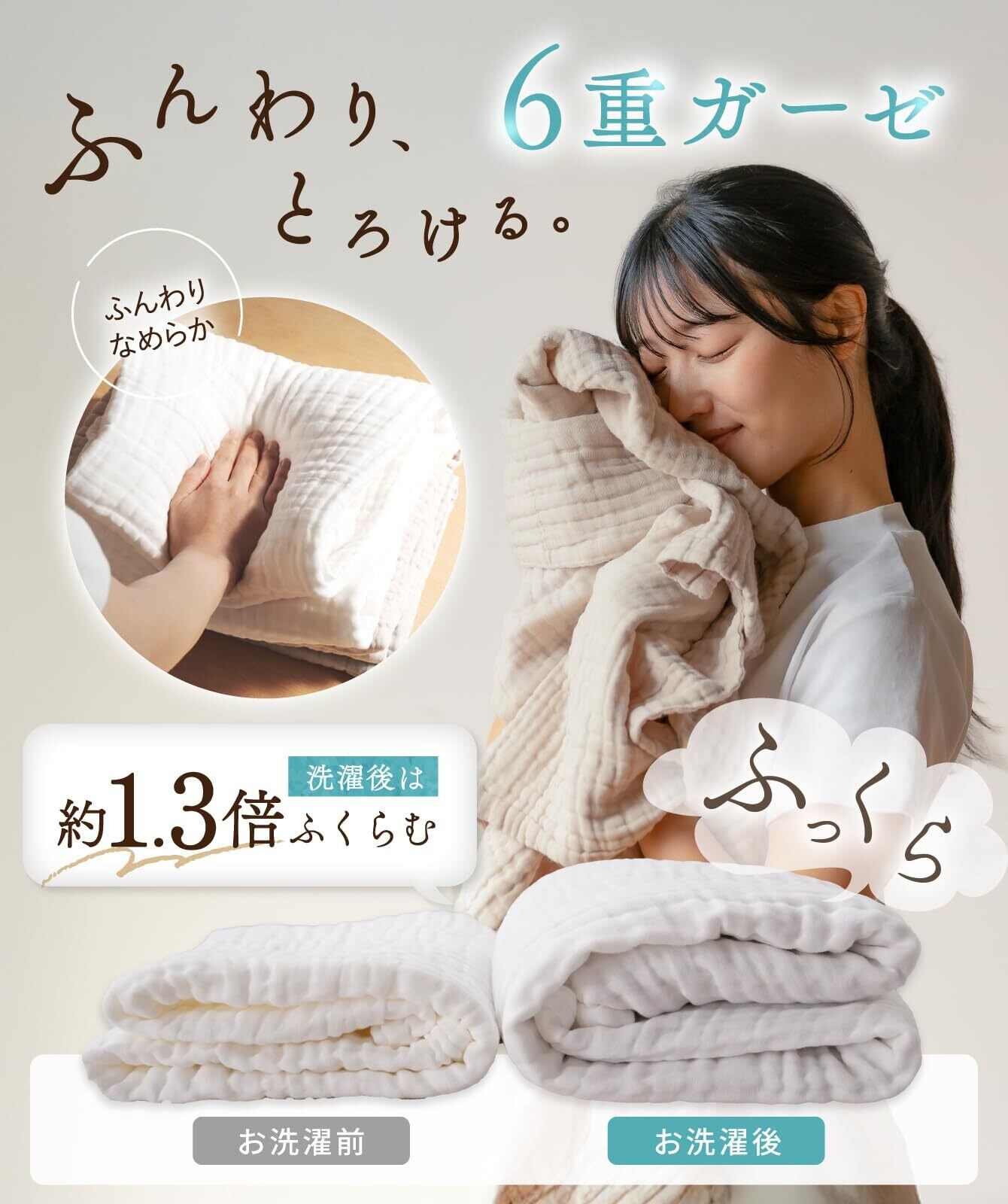 【軽くてふんわり。6重ガーゼ構造】 空気をたっぷり含む6重ガーゼ構造だから、手に取った瞬間からふんわり軽やか。触れた瞬間のふんわり感が続いて、洗うほどにやわらかさもアップ。分厚いタオルが苦手な方や、軽い使い心地を求める方にちょうどいい一枚です。