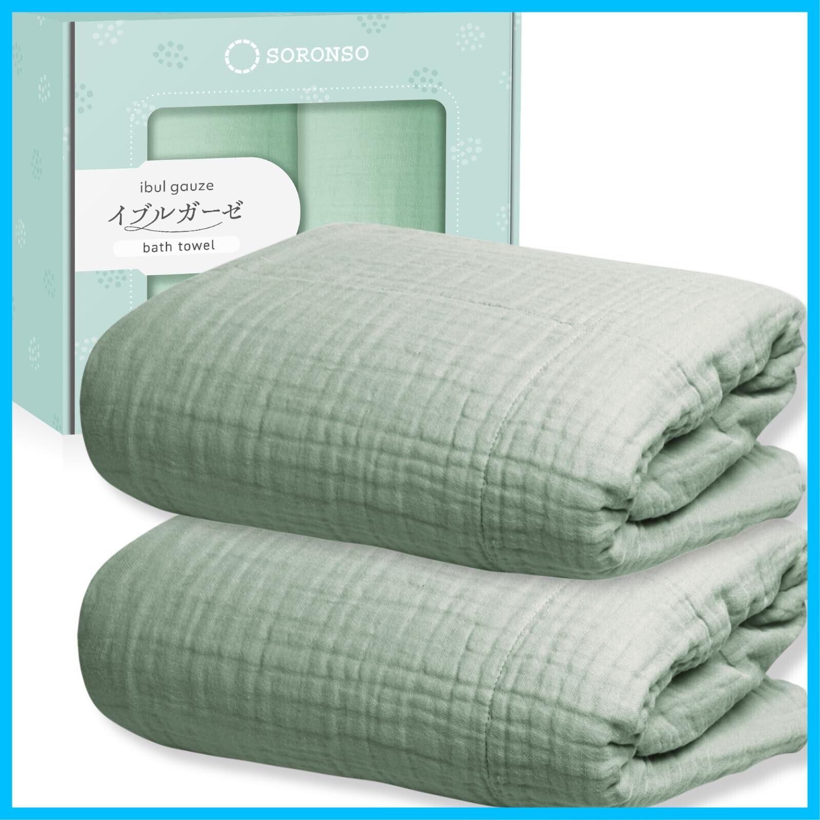 イブルガーゼ バスタオル 素肌もてなす ガーゼバスタオル ワンタッチ吸水 6重ガーゼ くすみカラー (ミストグリーン, バスタオル (2枚組))