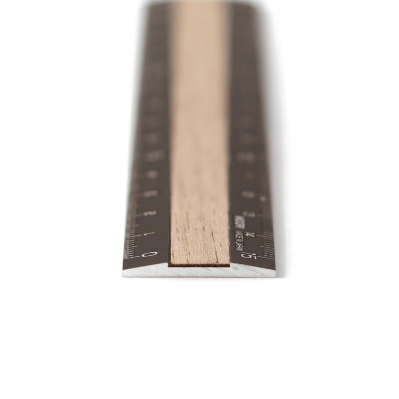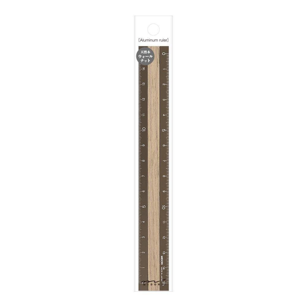 丈夫なアルミと、高級木材のウォールナットを使用した15cm定規です。