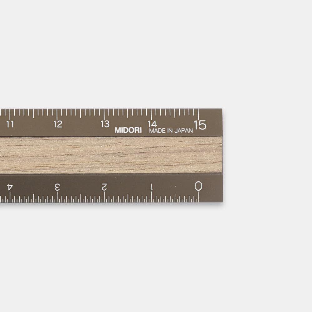 DESIGNPHIL ミドリ(MIDORI) 定規 アルミ ウッド 15cm 茶×茶 42280006