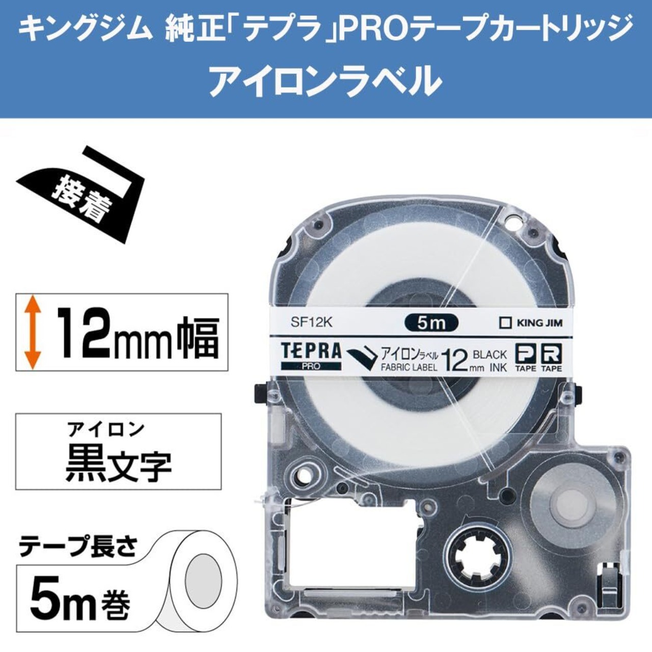 キングジム テプラPROテープカートリッジ アイロンラベル 12mm 白/黒文字 5m SF12K