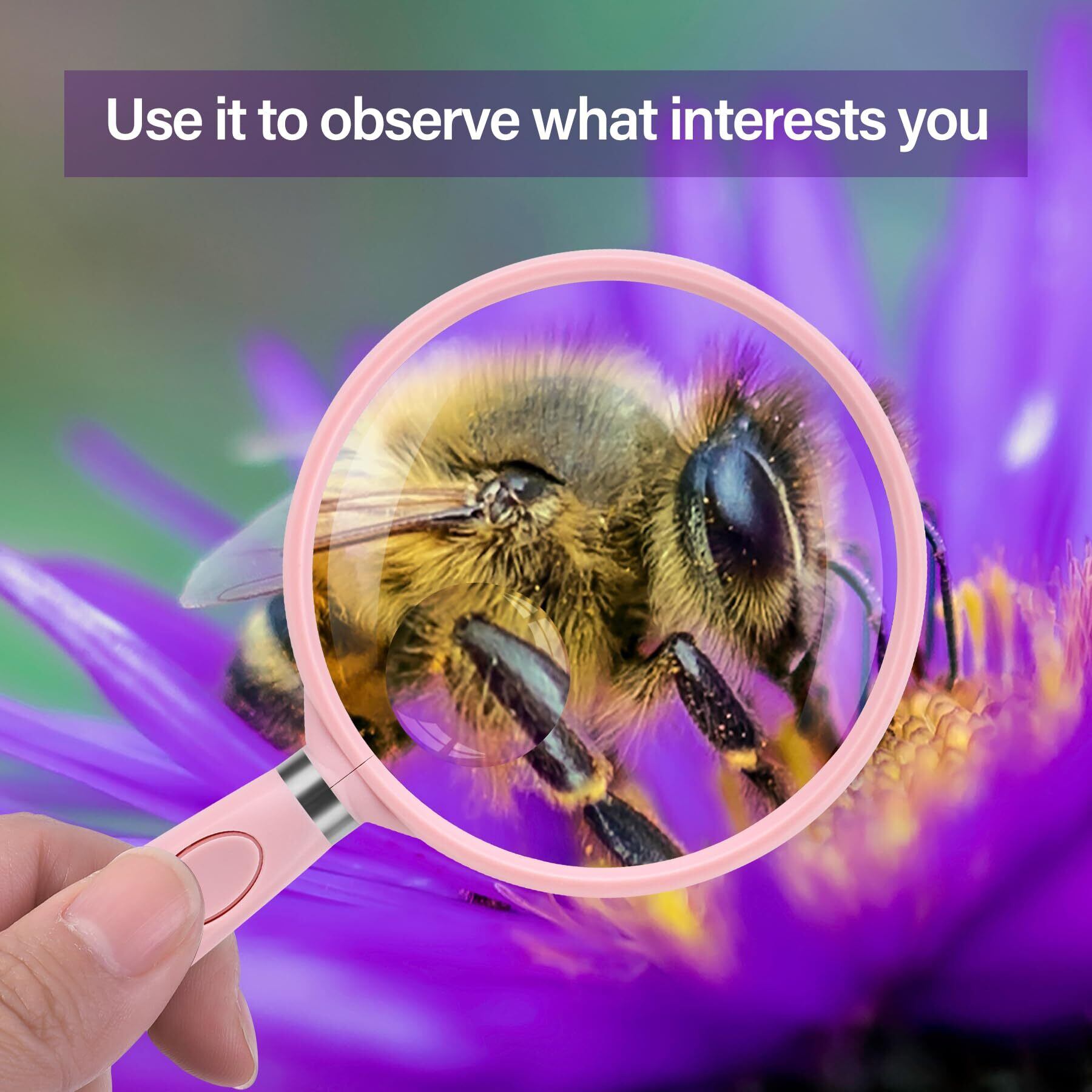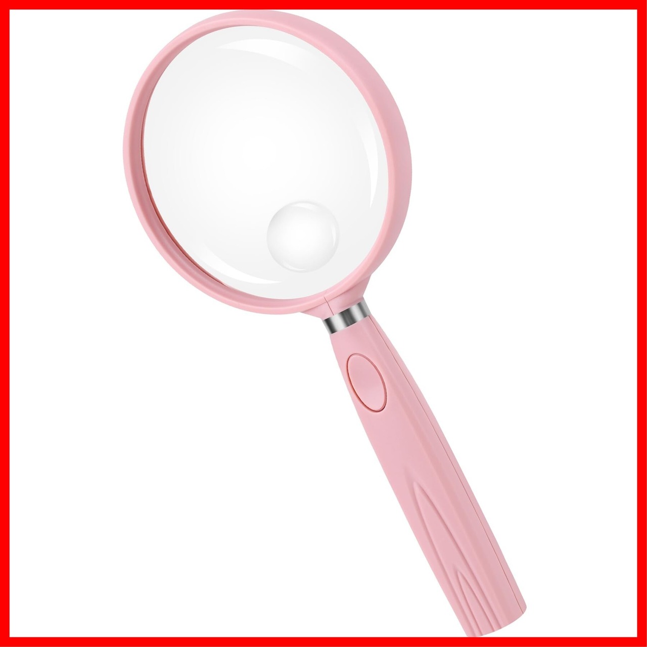 拡大鏡 10倍と30倍 手持ち ルーペ 大きく 見やすい 軽い シンプル 直径75mmで読み物に便利なサイズ(ピンク)