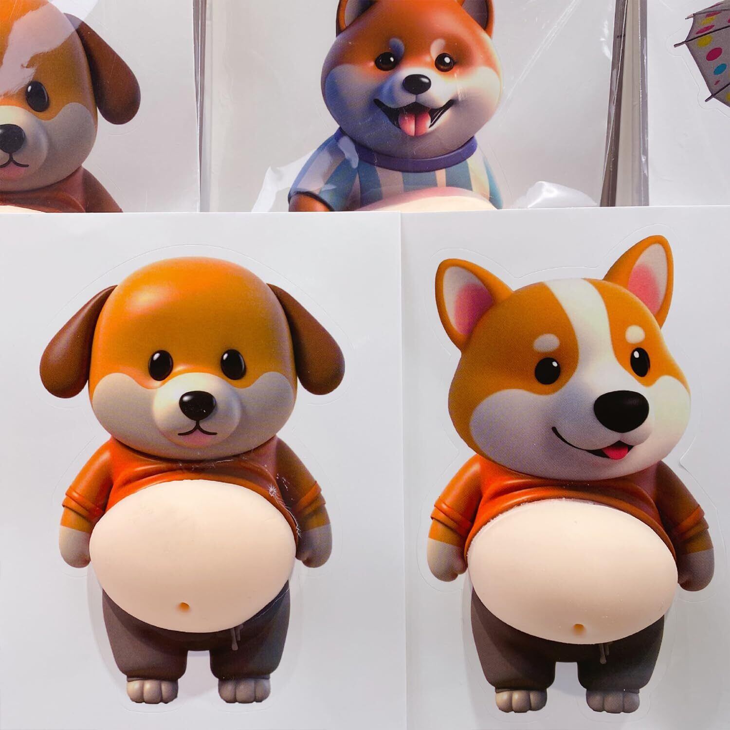 柴犬 ぷにぷにシール お腹ぷにぷに おしりシール 3D立体ステッカー 5/10枚セット かわいい お尻動物 キャラクター ふわふわ マシュマロ もっちり スクイーズ風 デコシール 手帳 ノート スマホケース アルバム装飾 DIY 手芸用品 子供 プレゼント ギフト 癒しグッズ おもちゃ (5枚セット)