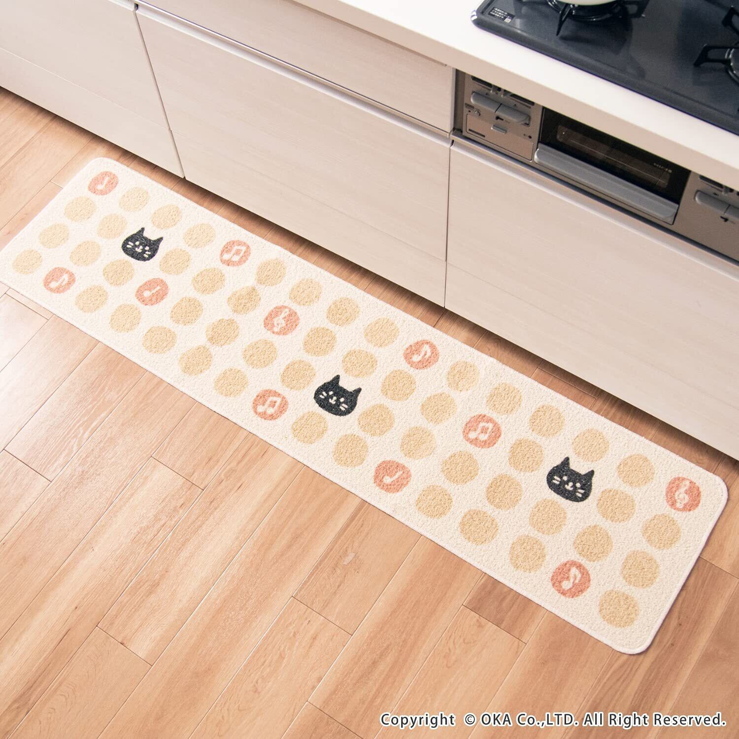 オカ(OKA) リズムキャット キッチンマット 約45cm×180cm ピンク (台所マット 日本製 すべり止め)