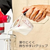 目盛りを見る際に、腰をかがめて横から覗き込んだり、カップを持ち上げたり、今まで当たり前と思っていた面倒な動作を不要にしたアングルドメジャーカップ