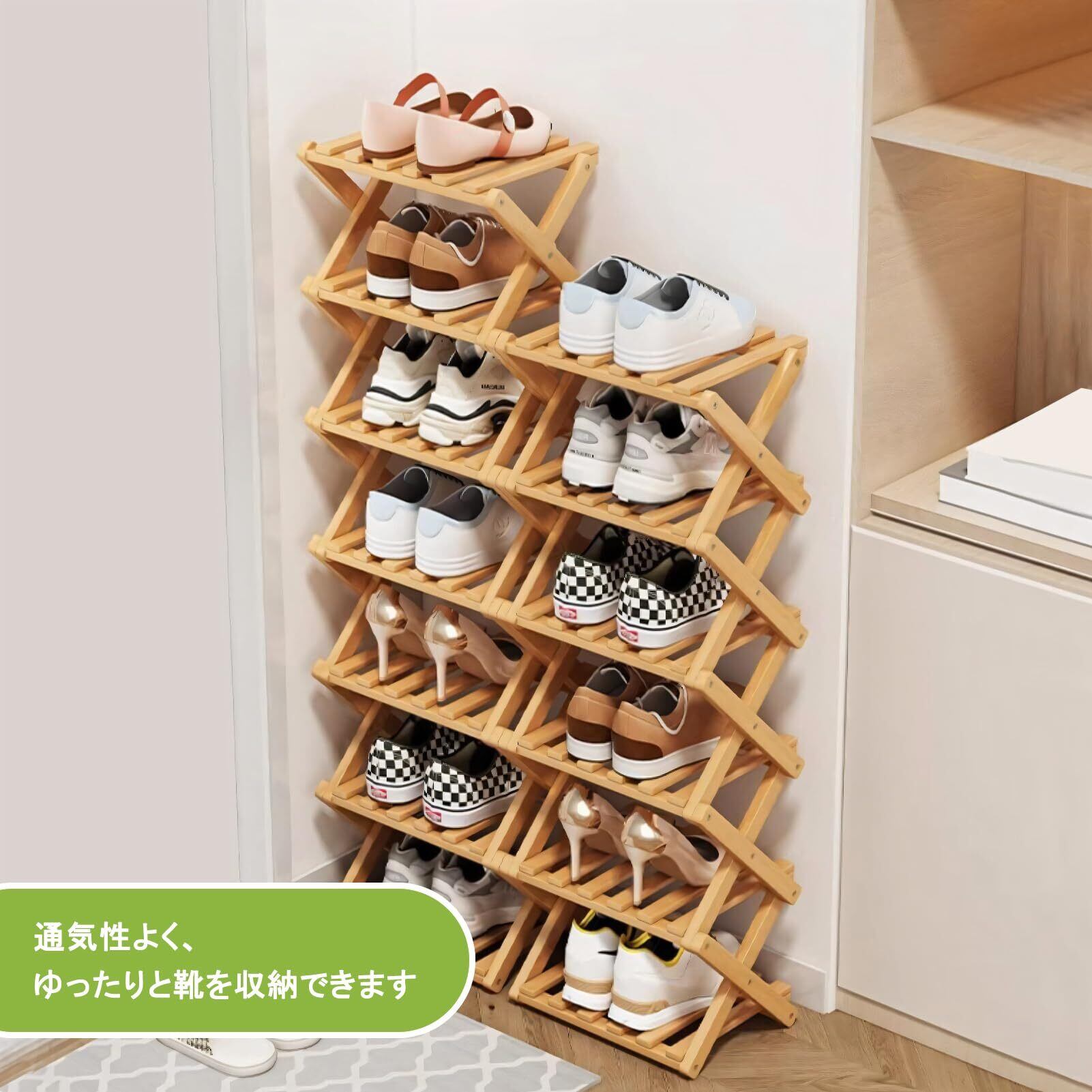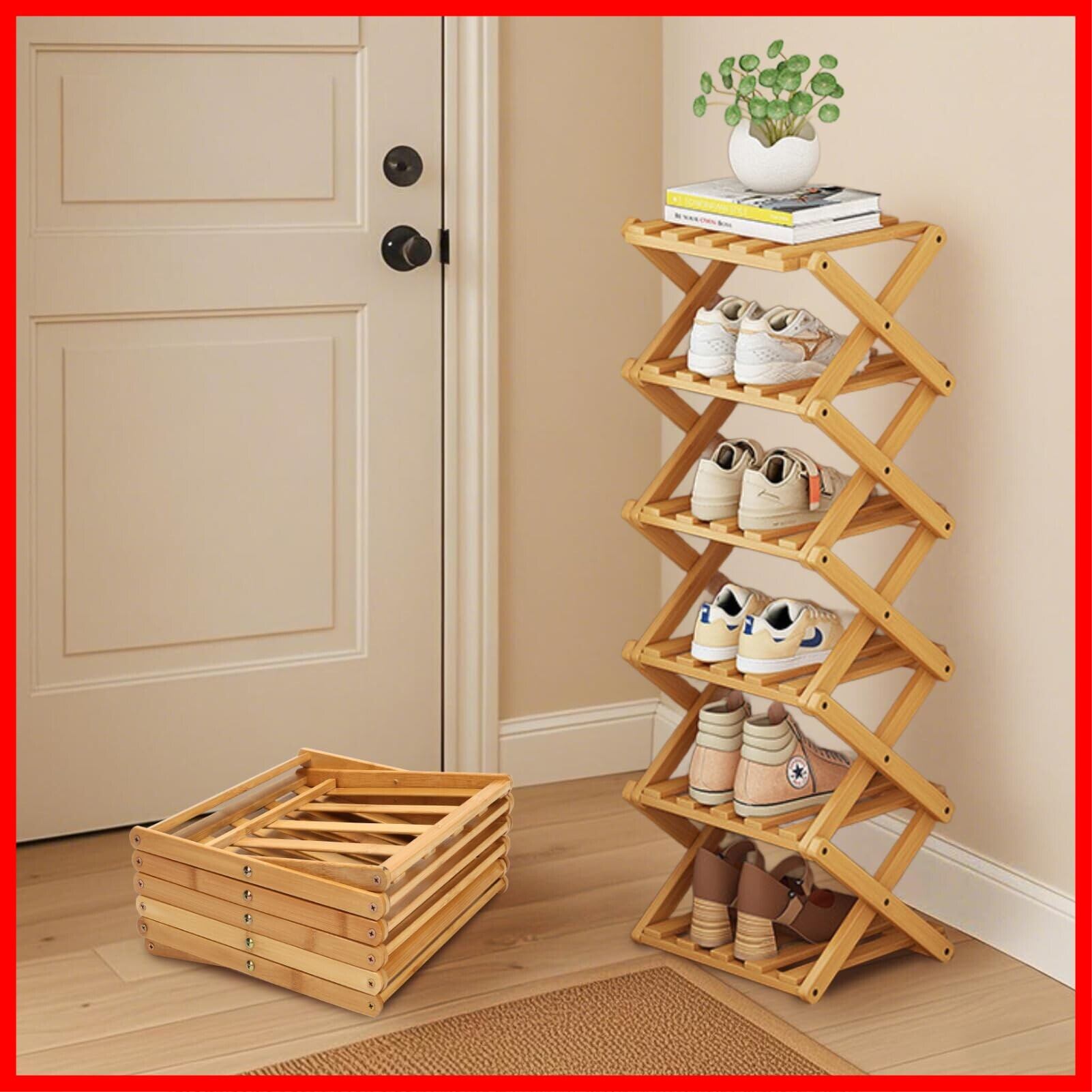 FYY シューズラック スリム 折りたたみ可能 靴箱 靴棚 下駄箱 靴 収納 シューズボックス 完成品 玄関収納 省スペース コンパクト 収納棚 靴置き 竹製 軽量 すき間 幅26cm 奥行26cm ひとり暮らし 組立不要