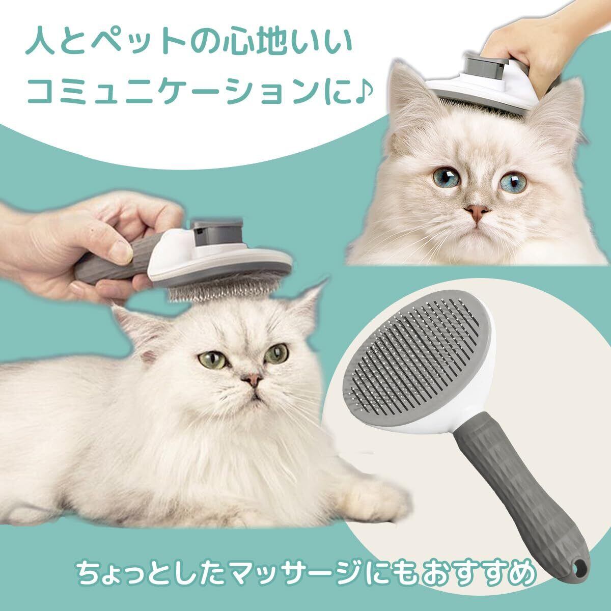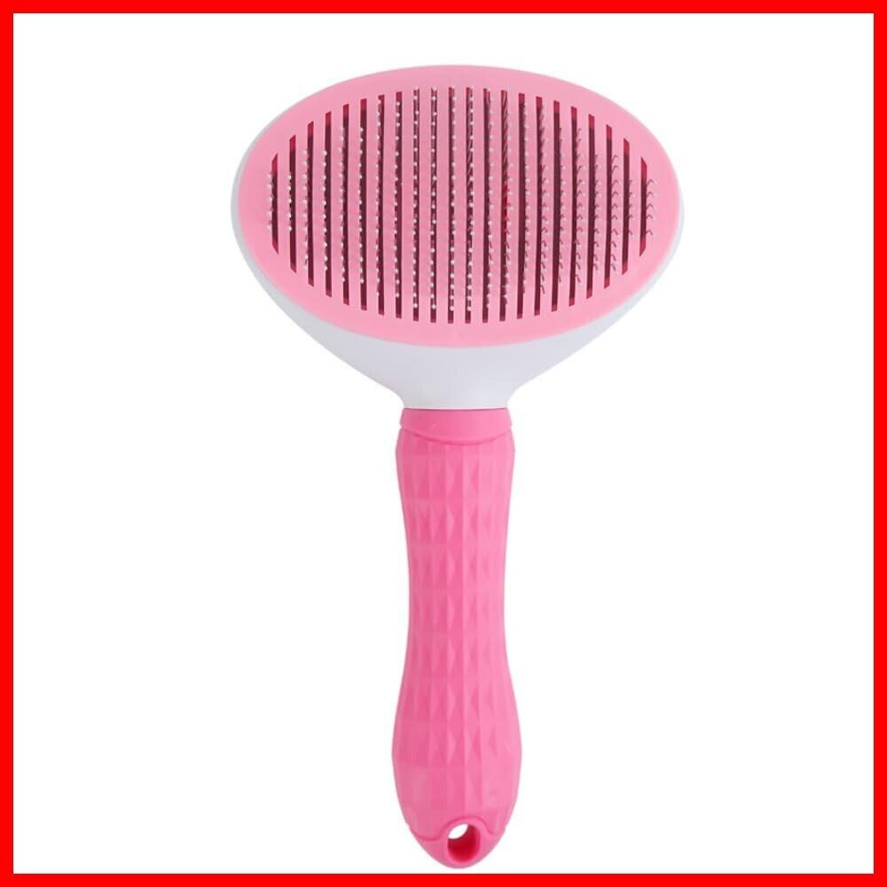 ペット用ブラシ 犬 猫 グルーミングブラシ くし 抜け毛取除去 簡単 痛くない ボタンを押して ワンプッシュ式 マッサージ 丸洗い可能 皮膚に優しい 短毛 中毛 長毛 (ピンク)