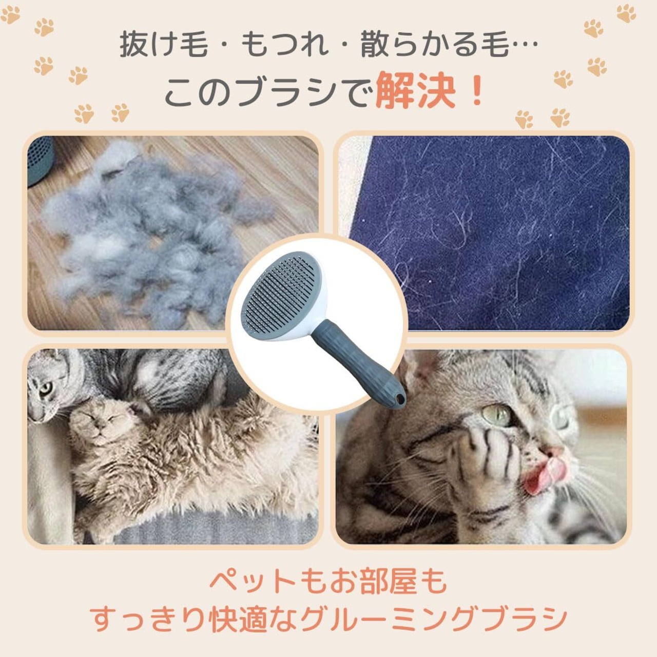 気になる抜け毛や毛玉をしっかりキャッチし、お部屋もお洋服も汚しにくい!ペットとの時間をより快適にしてくれるグルーミングブラシです。