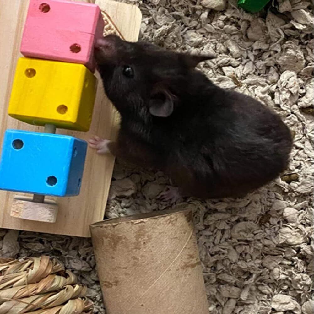 【趣味性】噛むおもちゃのカラフルな木製ブロックが回転し、おもちゃの趣味性が高まり、ハムスターの遊び興味を刺激し、彼らが探検や創造を続けることができます。ペットの機敏さを維持し、肥満を防止し、仓鼠の体を健康に保ちます