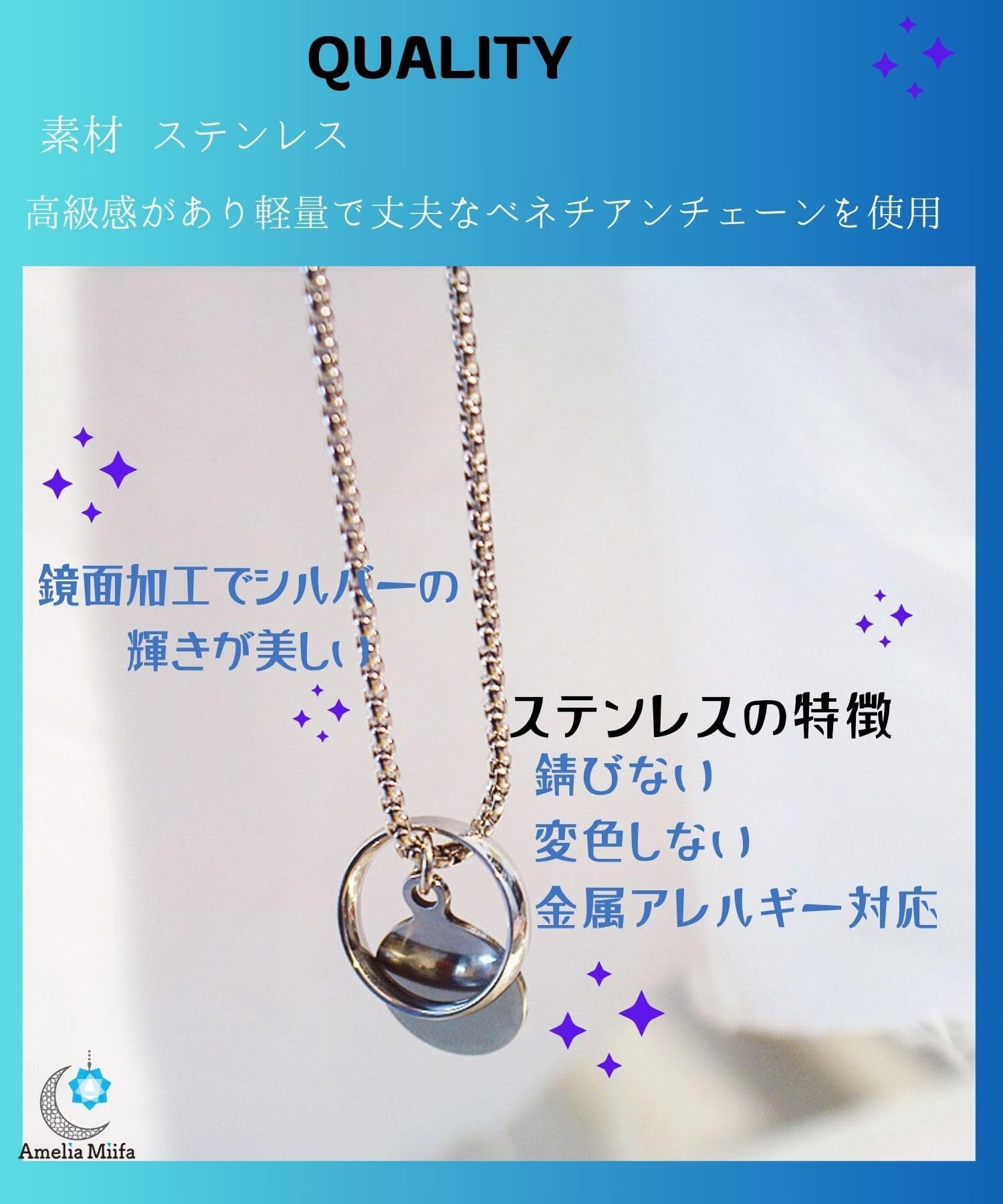 【素材】ステンレス ロジウムメッキ(通常の3倍のコーティング) 通常の3倍のコーティングを使用し、美しいシルバーの輝きが持続します。またニッケルフリーで、アレルギー反応が出にくいです。