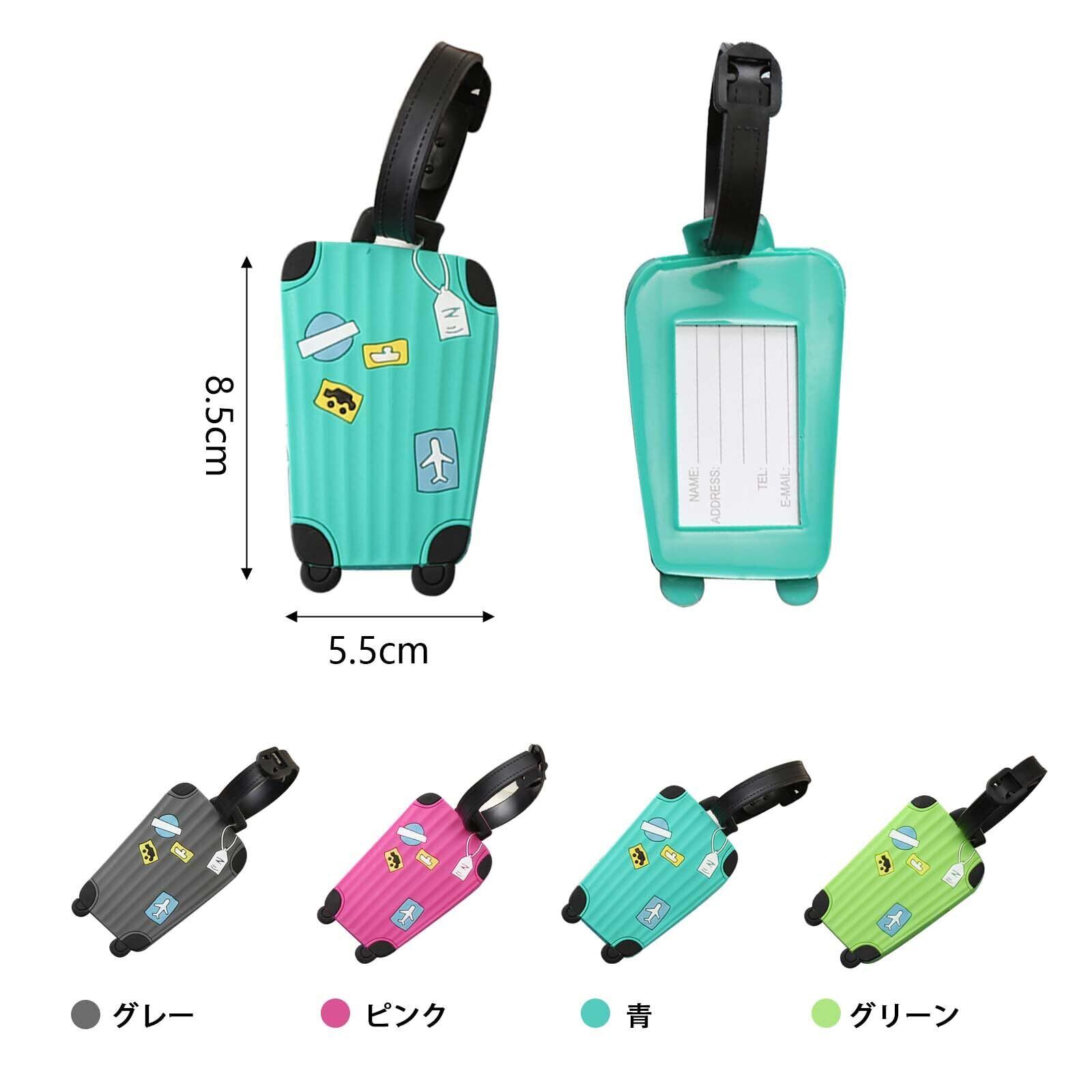 【包装】4色のラゲージタグ(ブルー*1+ローズ*1+グリーン*1+グレー*1)が届きます、サイズ仕様は約8.5*5.5cmです。明るい色とシンプルでファッショナブルな形の組み合わせは、あなたの荷物に掛けると非常に目を引くので、多くの荷物の中から自分の荷物を見つけやすくなります。