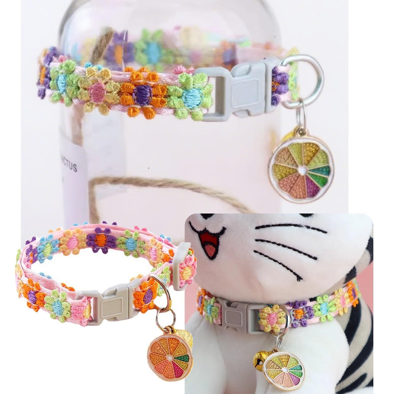 LOYELEY 猫首輪 3個セット 子犬首輪 可愛い首飾り 猫くびわ セーフティバックル付 猫くびわ セーフティバックル付 サイズ調節可 超軽量 柔らかい ペット首輪