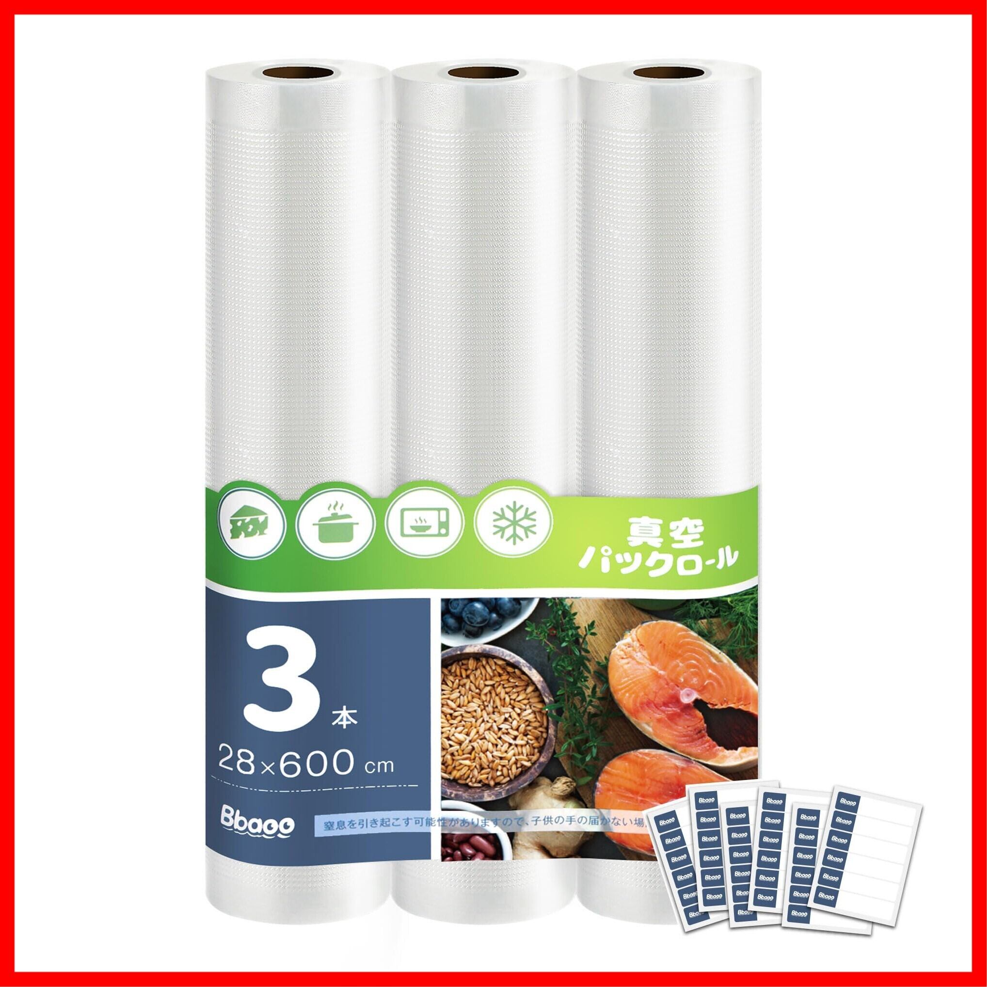 Bbaoo 真空パック袋 真空パック ロール PA+PE安全素材 28×600cm 3本セット フードシーラー 真空パック機専用ロール 自由にカット エンボス加工 専用抗菌袋 鮮度長持ち 食品保存 冷凍保存 電子レンジ解凍 低温調理 家庭用 業務用