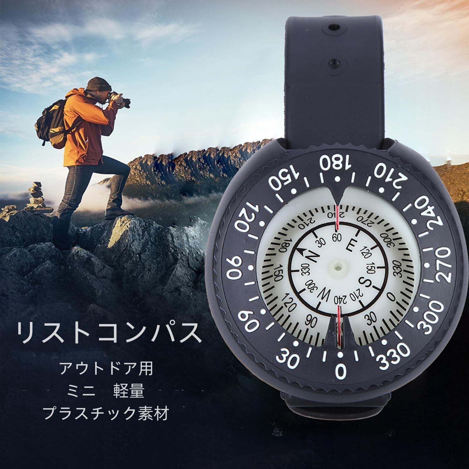 コンパス ダイビング 羅針盤 スキューバ リストコンパス プラスチック製 腕時計型 軽量 50m水中防水 方向指示 ボート/キャンプ/深海探検/登山/ハイキング/狩猟 アウトドア用品 屋外