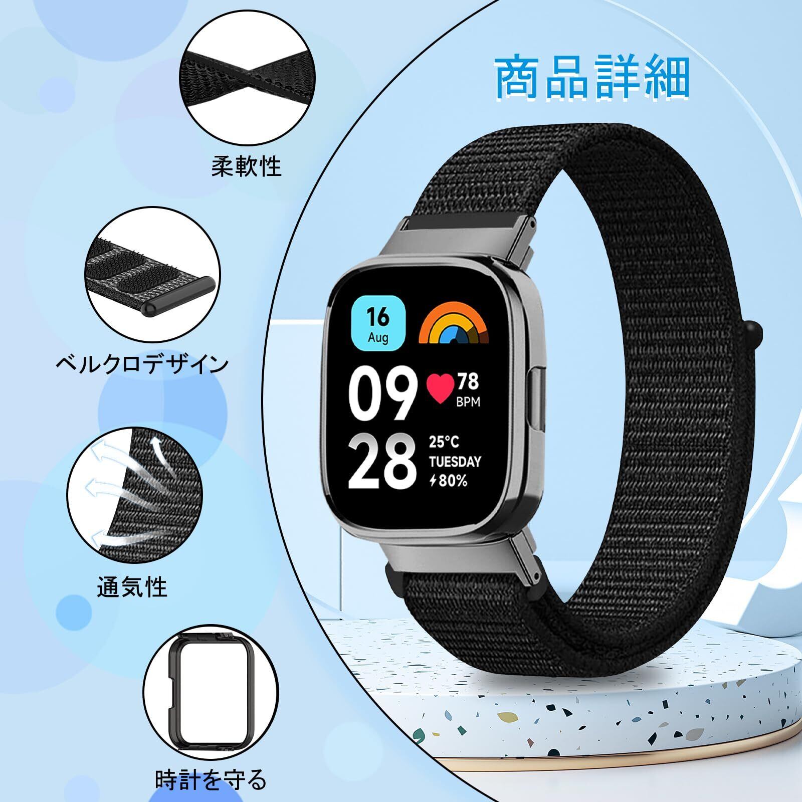 バンド Xiaomi Redmi watch 3 Active 対応 ナイロンバンド ベルクロバンド 軽量 柔らかい マジックテープ ストラップ 替えバンド 交換ベルト スポーツ 装着簡単 交換バンド Xiaomi Redmi watch 3 Active 用 深いブラック
