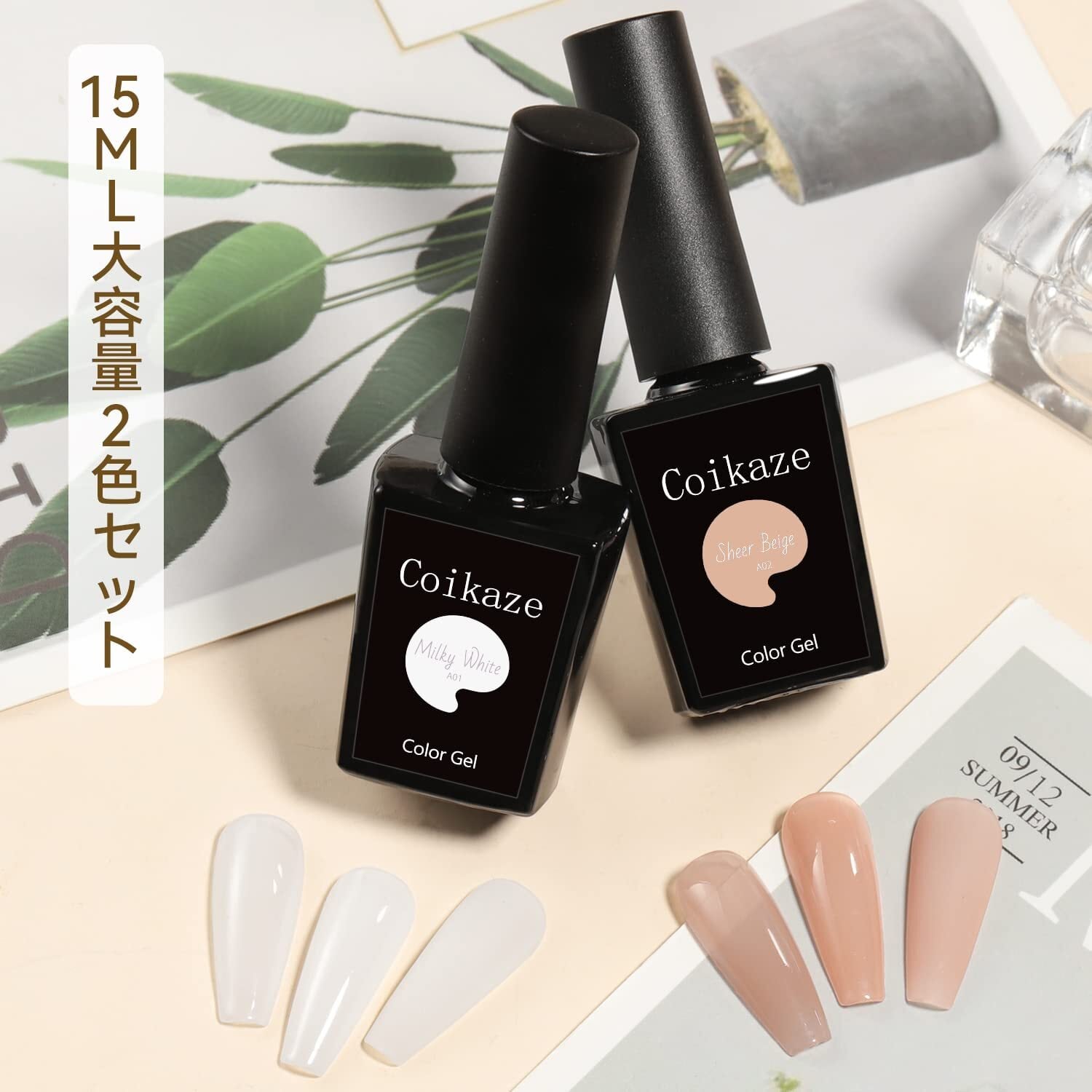 ジェルネイル Coikaze シアーカラージェル 大容量 2色セット 透明感 ネイルジェル ソークオフジェル ネイルアート カラーネイルジェル セルフネイル ポリッシュタイプ 15ml UV・LED対応