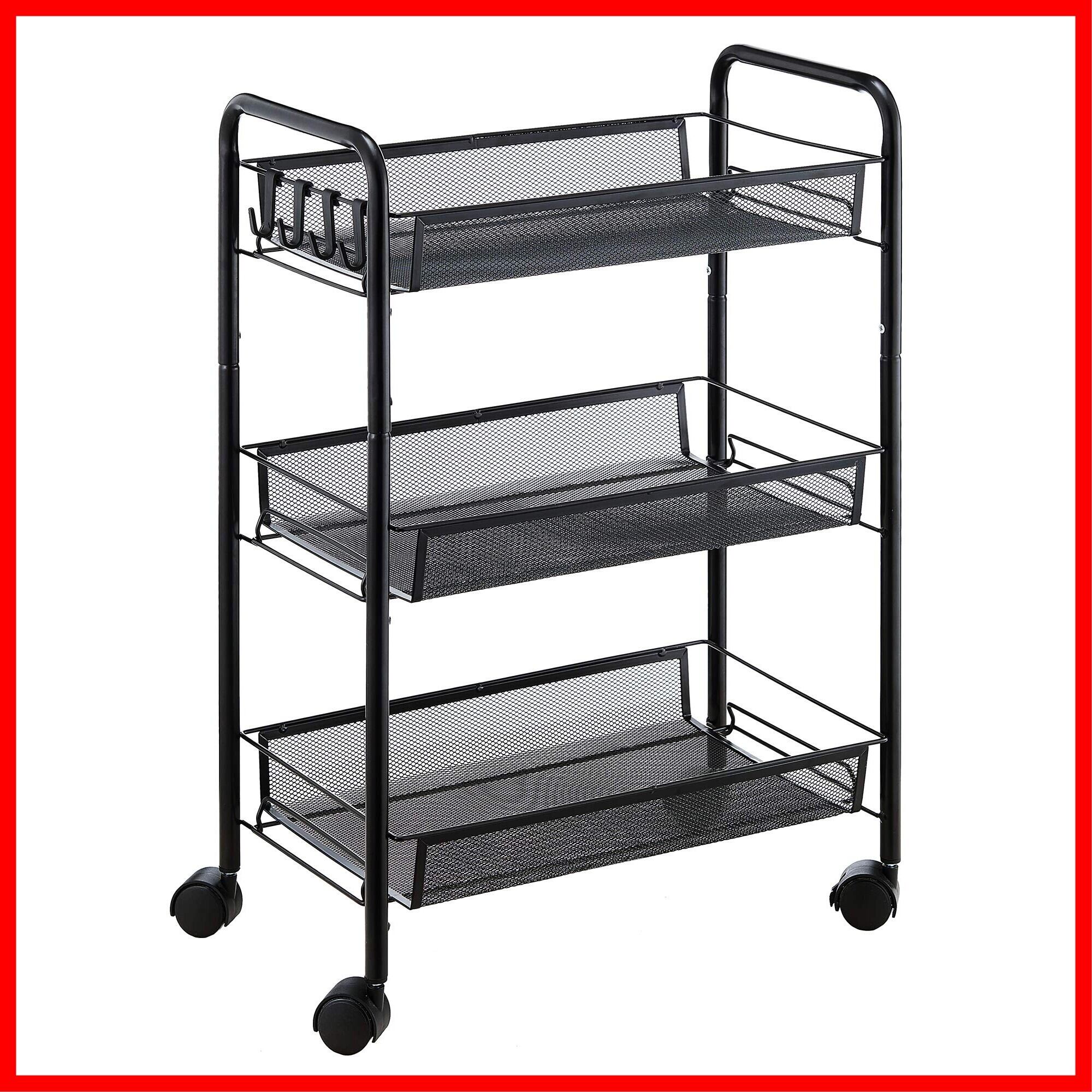 EKNITEY メタルラック キッチンワゴン メタル メッシュ キッチン カート 防錆 小物収納 サイドワゴン 3段 幅26.5×奥行45.5×高さ63.5cm ブラック