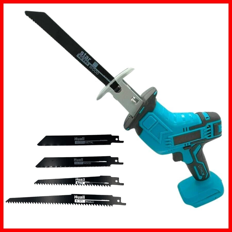 マキタ 互換 MAKITA 対応 充電式 レシプロソー 電動 のこぎり 刃 4本付き 木材 金属 小型 コードレス 電動工具 互換 製品 14.4V 18V 対応 バッテリー 初心者 本体のみ (RECI01) (本体単品(ブルー))