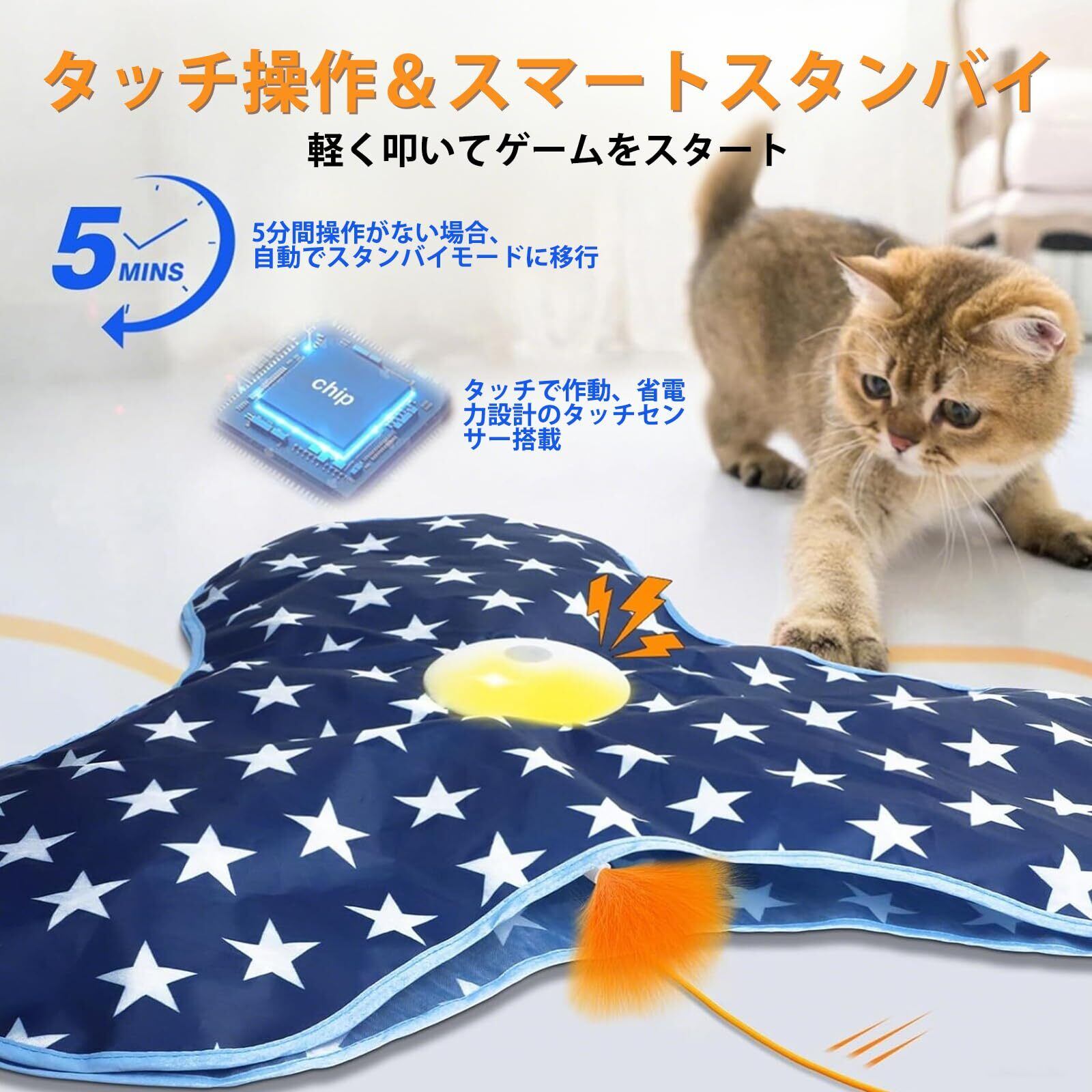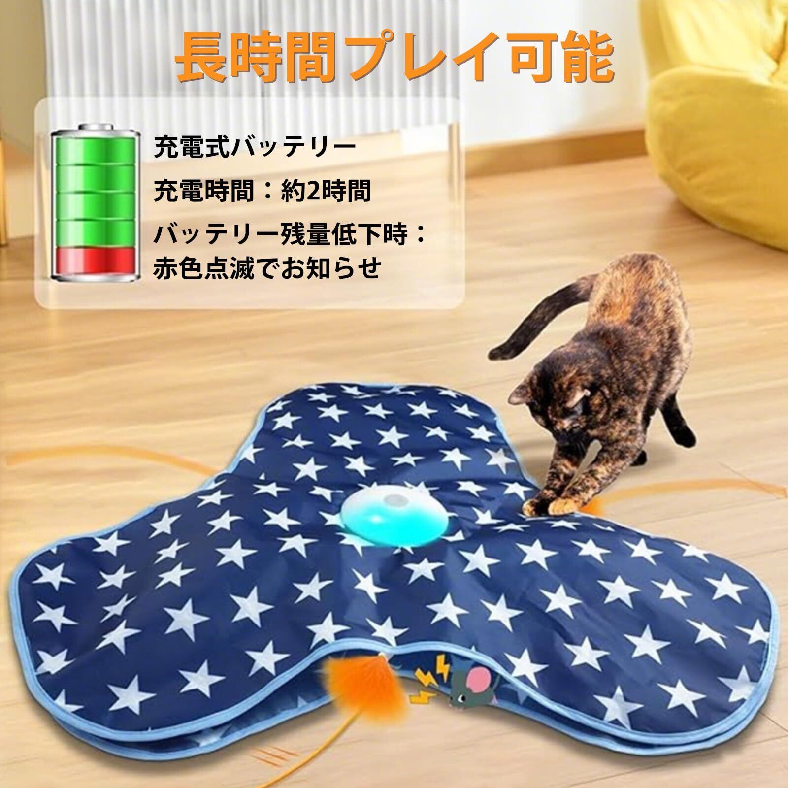 【しゃかしゃかぶんぶん】 猫 自動 おもちゃとして、不規則に動く羽根と本物そっきりの鳴き声で狩猟本能を刺激。布カバー下から突然現れる動くおもちゃの予測不能な動きが、マンションの狭い空間でも一人遊びを促進します。