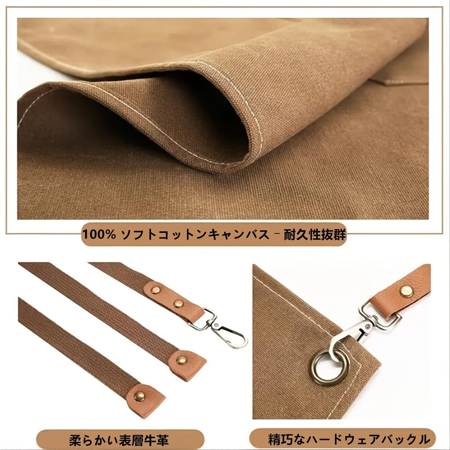 [多機能ポケット]:ポケット付きの多機能エプロンは、実用的でスタイリッシュなデザインを採用しております.ポケットにガジェットを収納することに使用でき、エプロンにハサミやペン、スマートフォンやメモ帳を入れることができ、及びお必要な様々な実用なツールも入れることができます.本製品は日常生活と仕事のニーズを満たす良いエプロンです.ペンやメモ帳などはもちろん、スマホ タブレットも収納可能。また、ハサミ、ペンチ、工具などを入れても破れにくいないため、様々なシーンで便利に活躍。異なるサイズのポケットが5つあり、ツールを分類して収納でき、 ペンやスプーン入れのストラップホルダーも付いてある。携帯、タブレットも入れる。実用の上、男女兼用で、おしゃれでしょう。