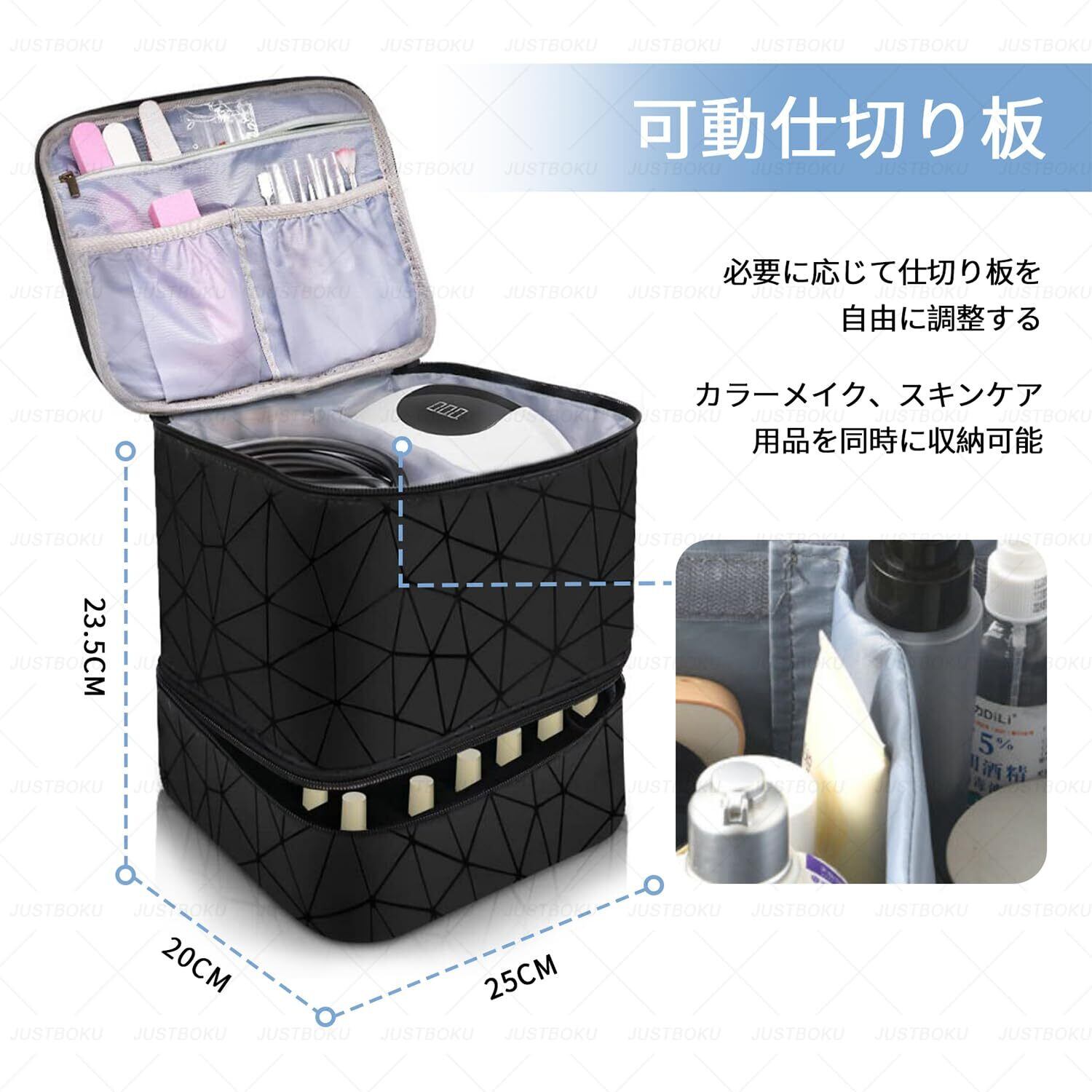 JUSTBOKU ネイル 収納 ネイルケース ネイル収納ボックス 大容量 ネイル収納ケース 持ち運び マニキュア 収納ケース ネイルバッグ ネイル入れ メイクボックス コスメボックス (ブルー)