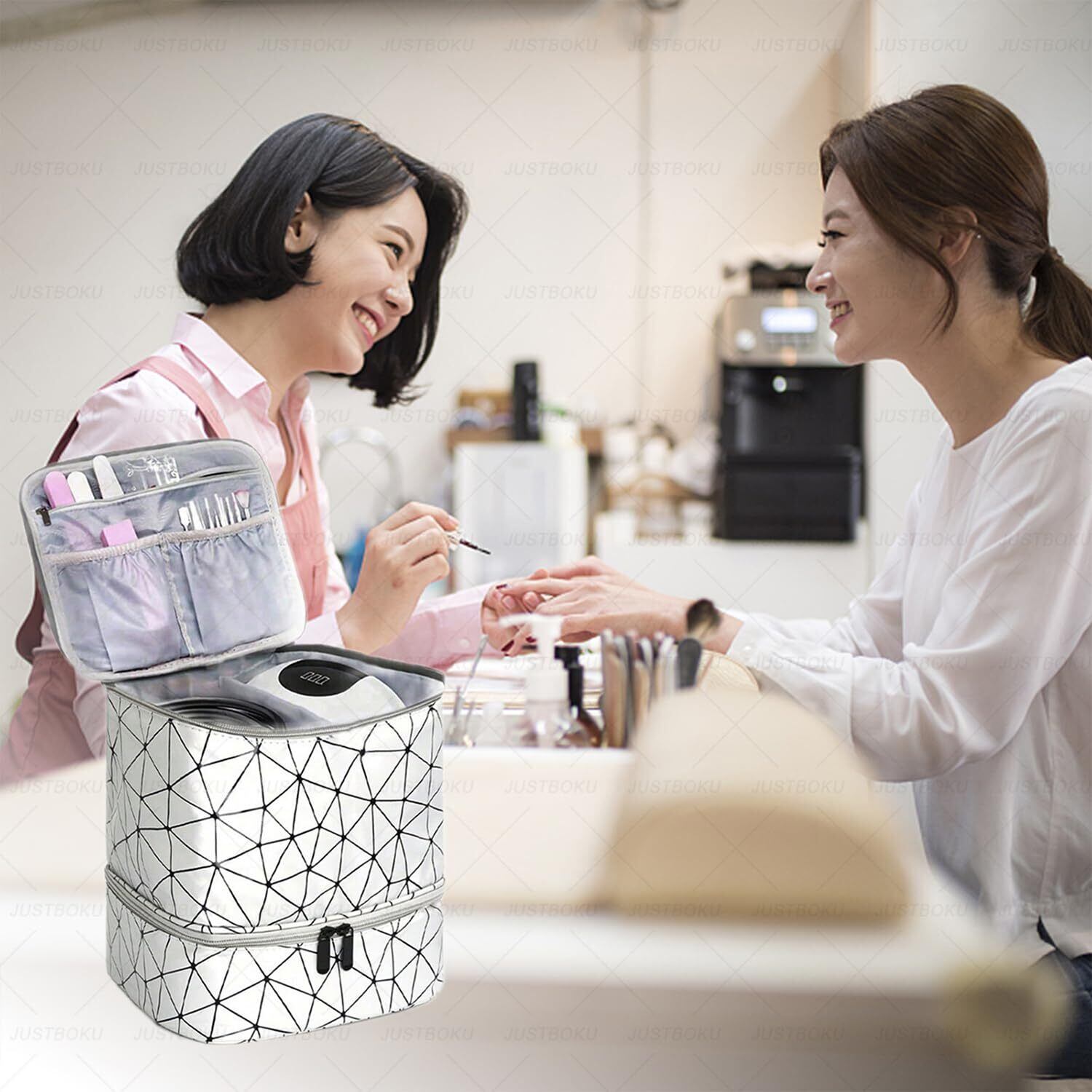 ネイル収納ケースは、ネイルワーカーにもおすすめです。コンパクトで便利な収納スペースを提供します。機能性とスタイルを兼ね備えたこの化粧バッグは、仕事用と家庭用収納にも最適です。