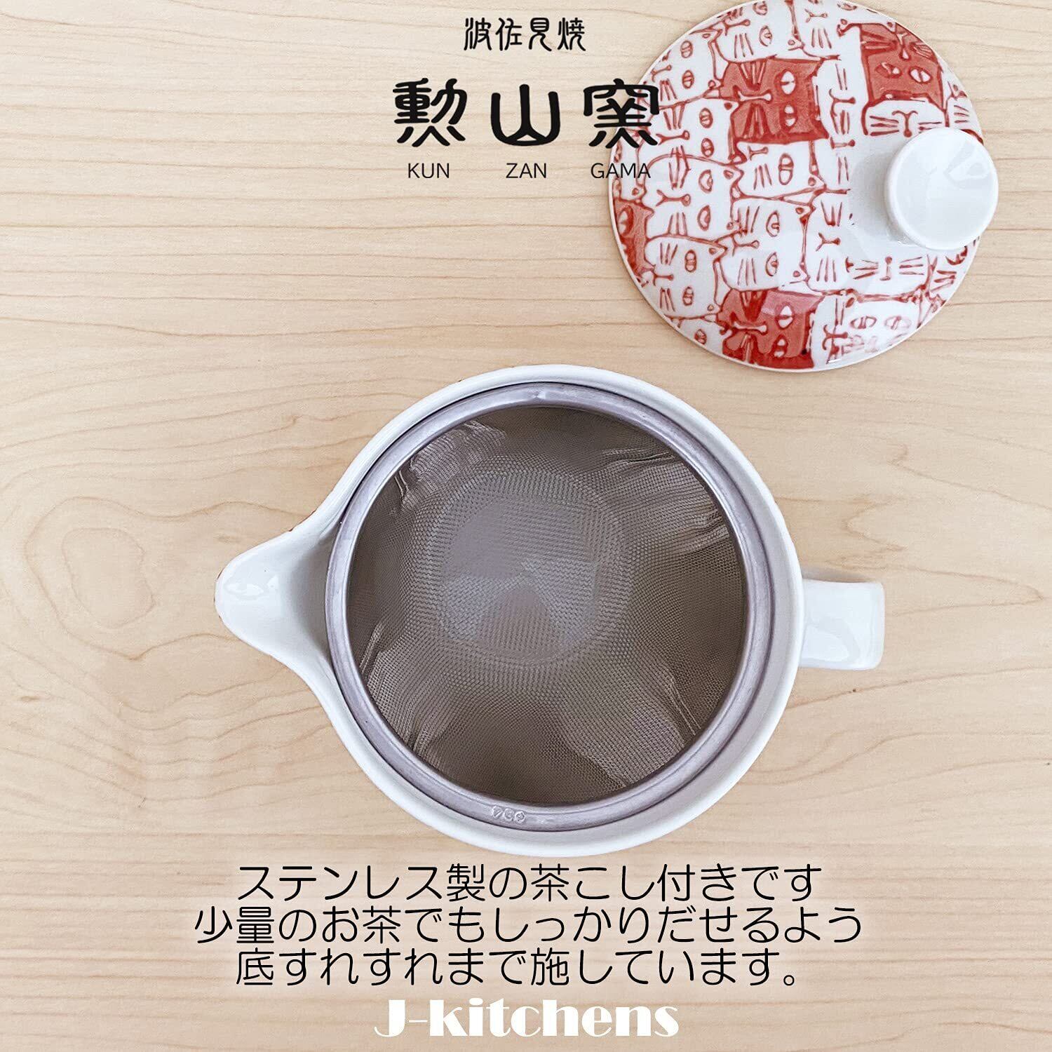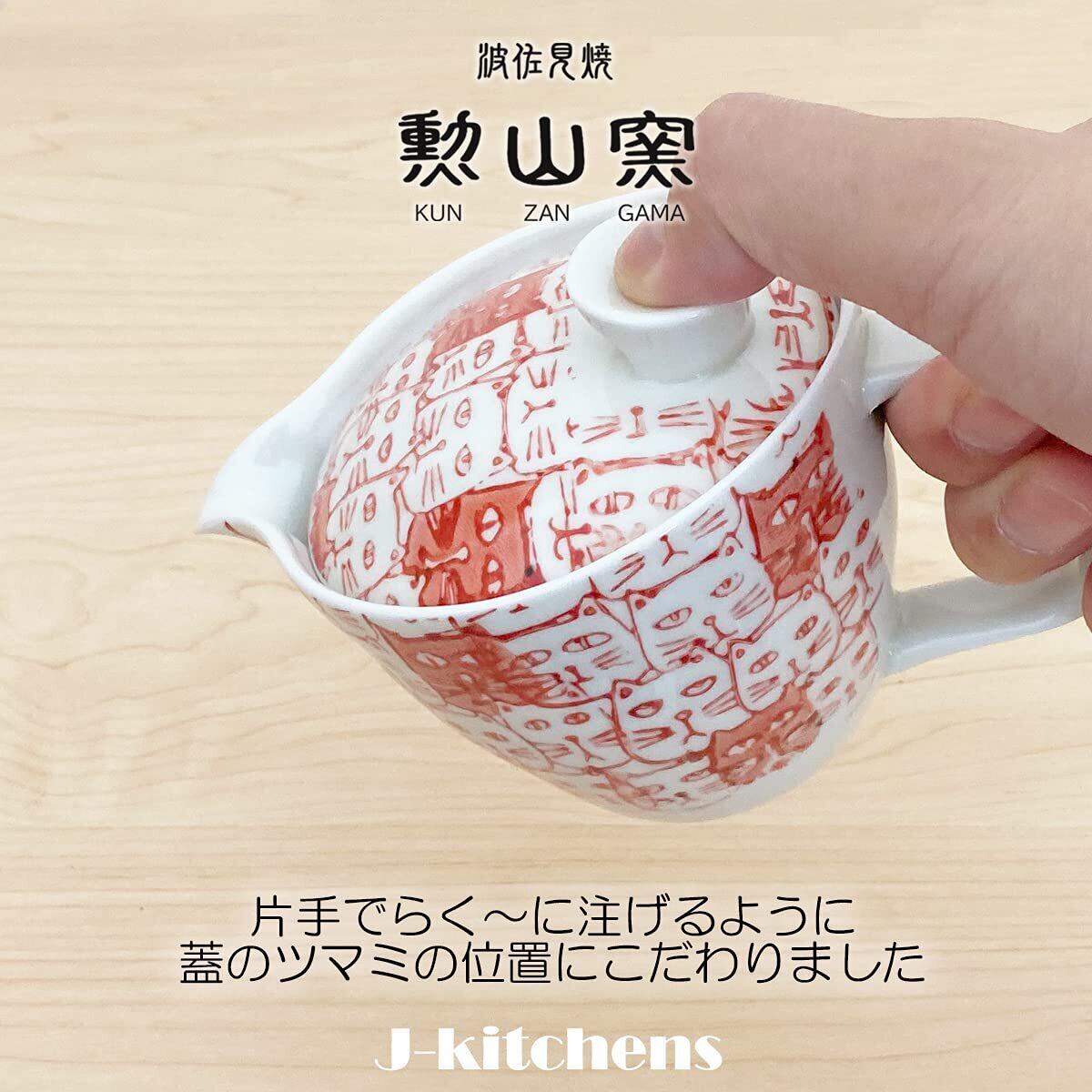 J-kitchens 勲山窯 急須 茶こし付き 240ml 1人用 ~ 2人用 波佐見焼 日本製 キャッツ レッド S