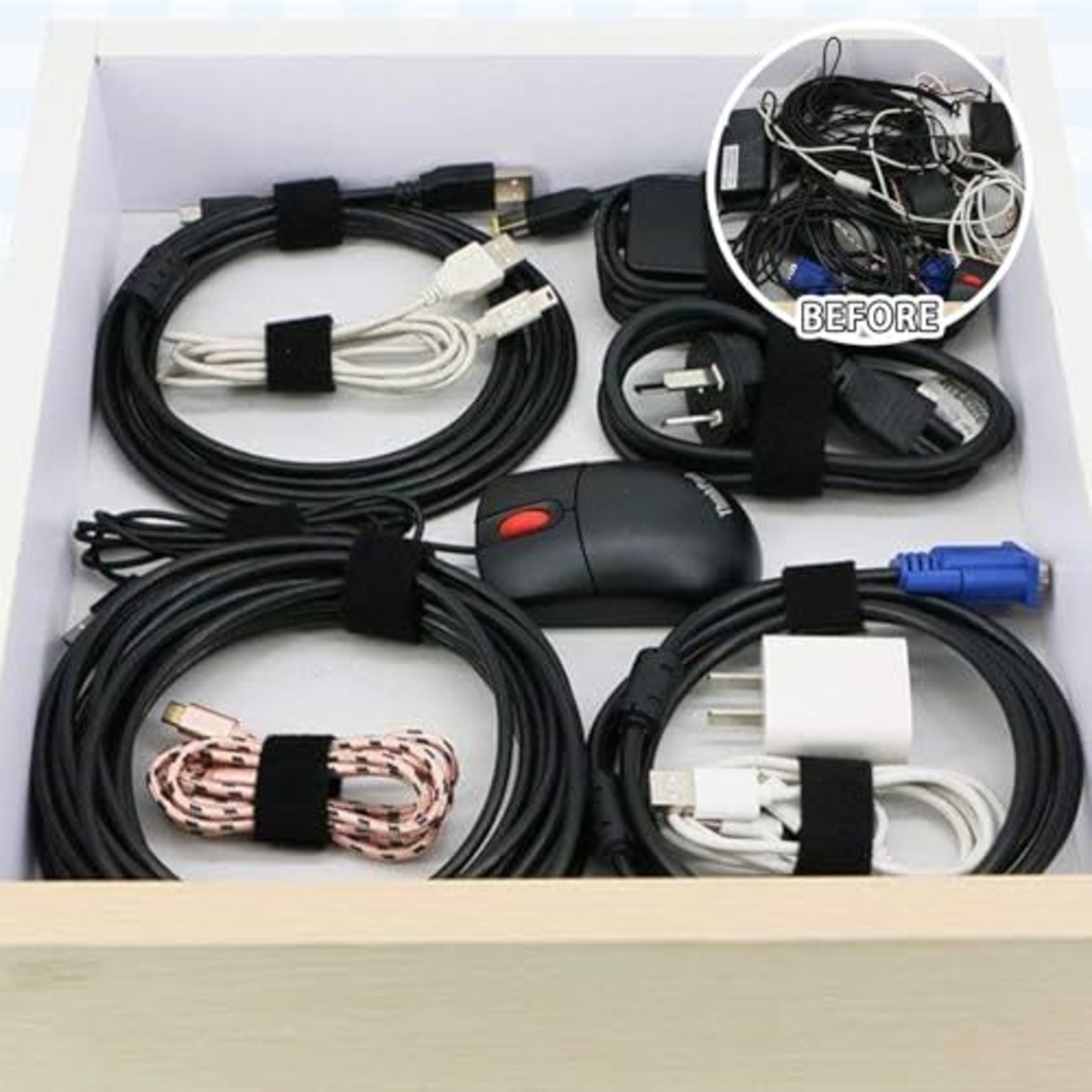 【簡単に使用】ケーブル結束バンド:ケーブルをまとめた後、 結束バンドの穴を通したら何回にケーブルの真ん中に回って貼ります。 長さが足りない時は、テープをつなげて利用するくことも出来ます.全体を束ねるときに簡単に結束できますできます。