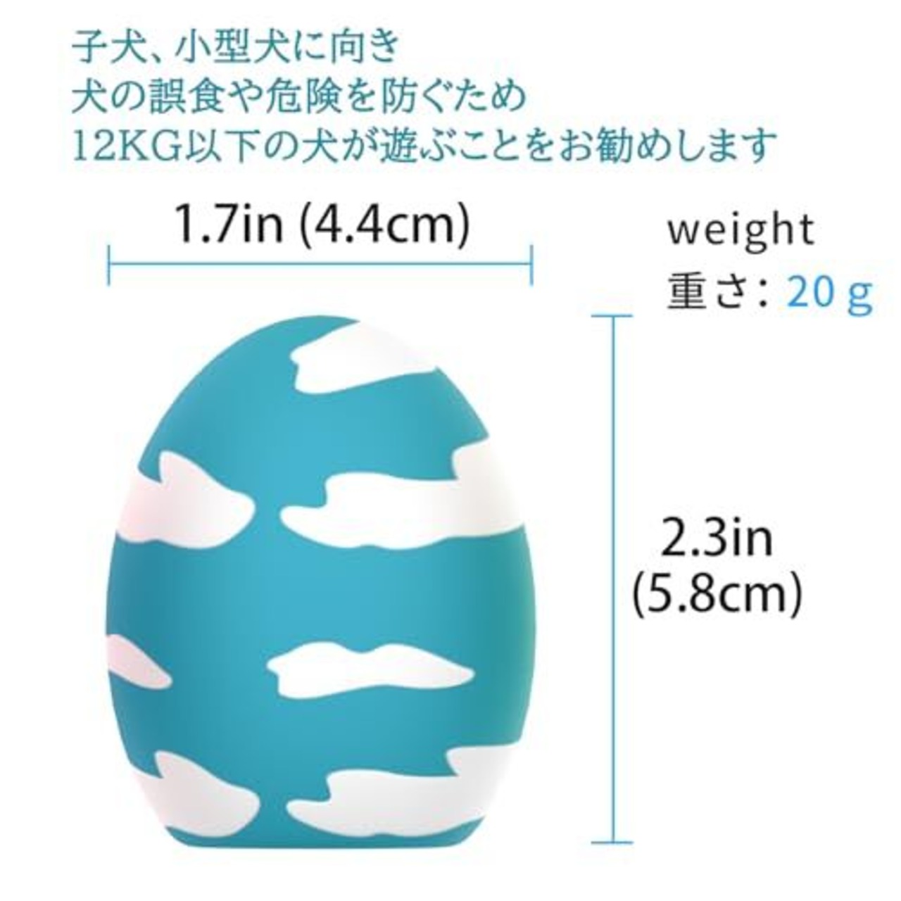 【可愛い6点セット・小型犬・子犬に適用・愛犬遊び時でご注意】 多彩な心地よい色と柔らかい質感の卵のデザインとわいい柄ので、どんなワンちゃん遊びやすく、子犬、小型犬に向きの超人気おもちゃです。犬の誤食や危険を防ぐため、12kg以下の犬が遊ぶことをお勧めします。与えたままの使用は破損や事故につながりますので、必ず飼い主が一緒に遊び、万一破損した場合はすぐに取り上げてください。