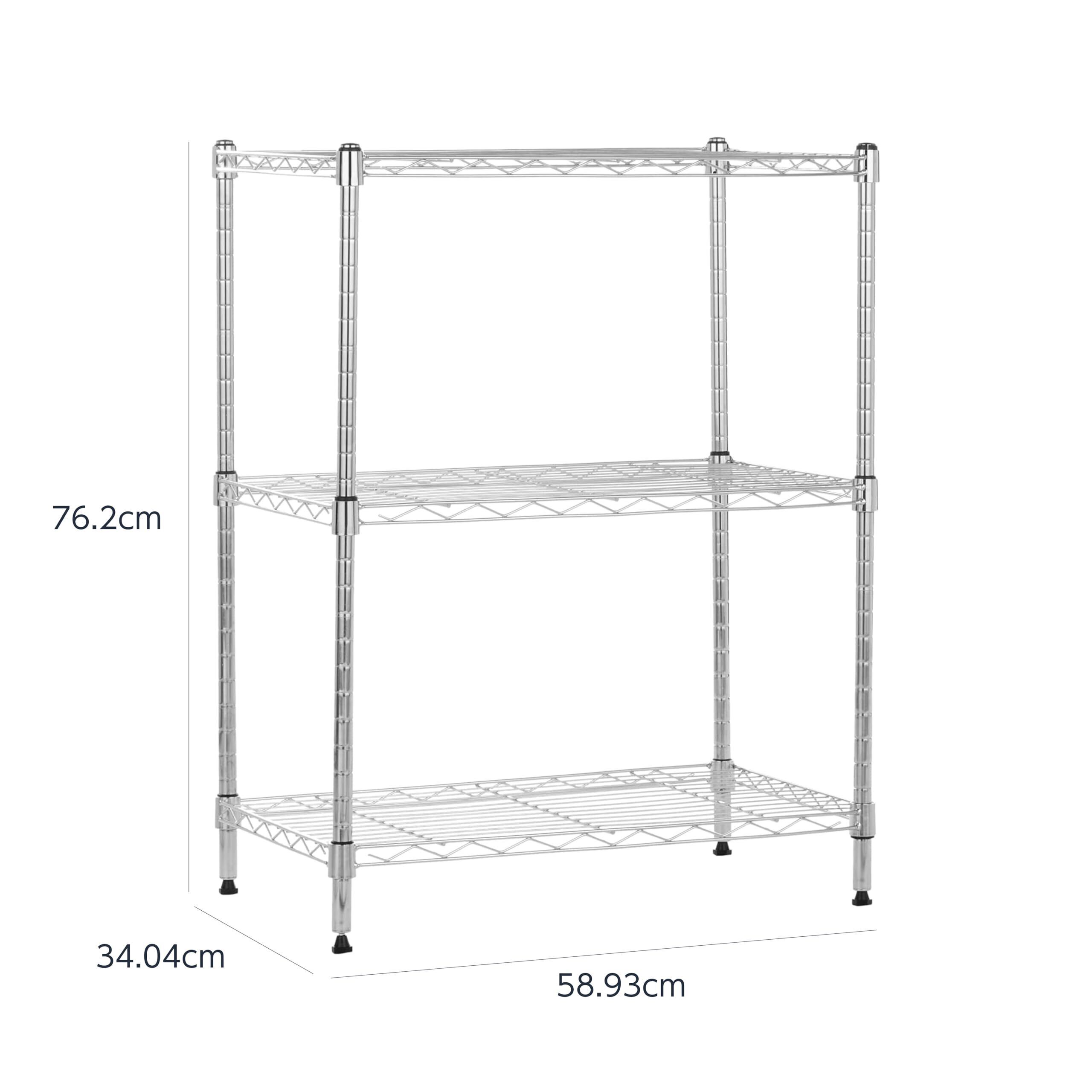 Amazonベーシック 3段スチールラック 棚 メタルラック キッチンラック 耐荷重340kg 幅58.9×奥行34×高さ76.2cm クローム