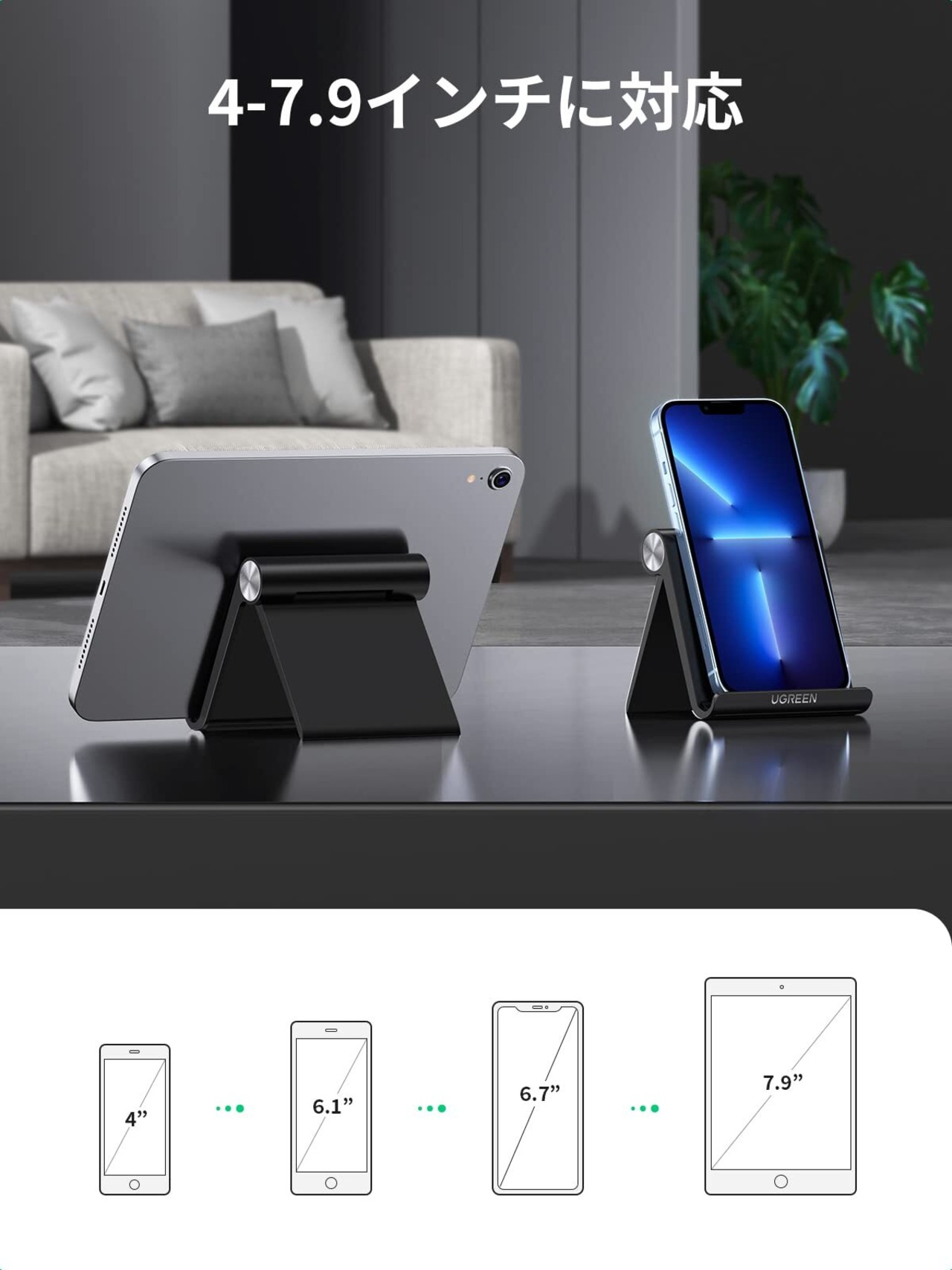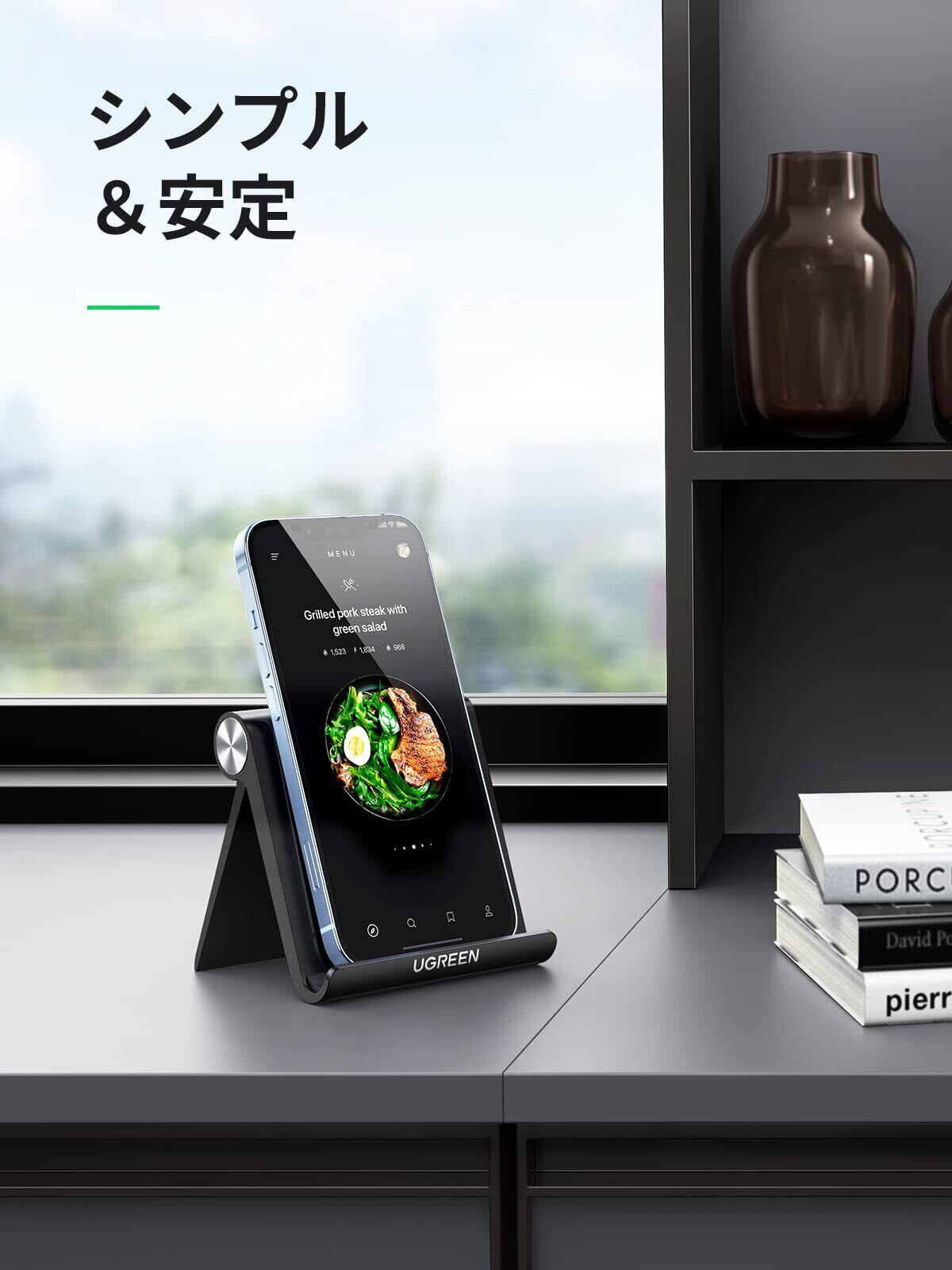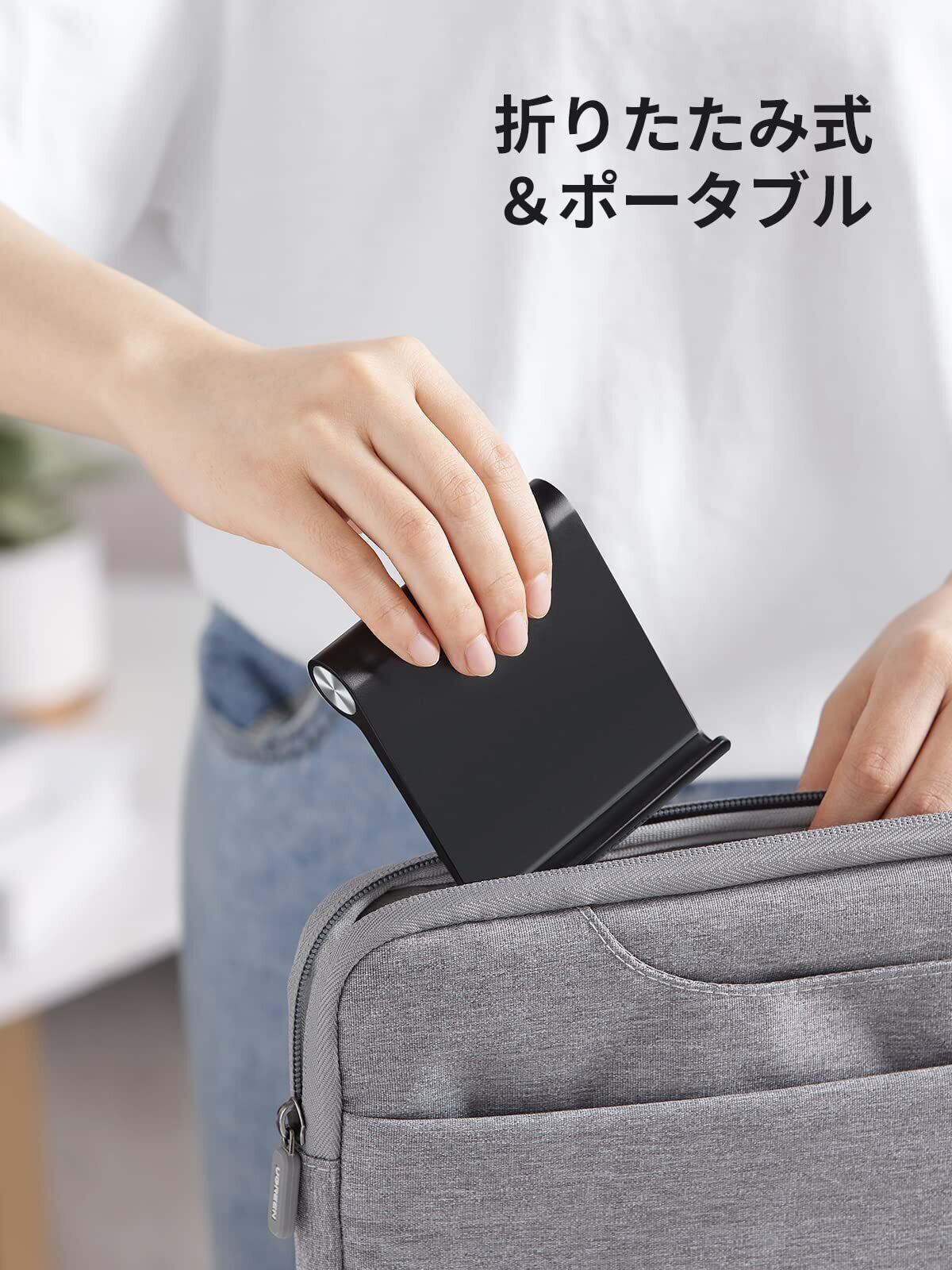 UGREEN スマホスタンド 携帯スタンド 卓上 Mサイズ 折りたたみ式 iPhone 14/13/12 Pro Max 角度調整可能 4~7.9インチのiPhone/Androidスマホ タブレットに適用 スマホ立て スマホ置き 黒
