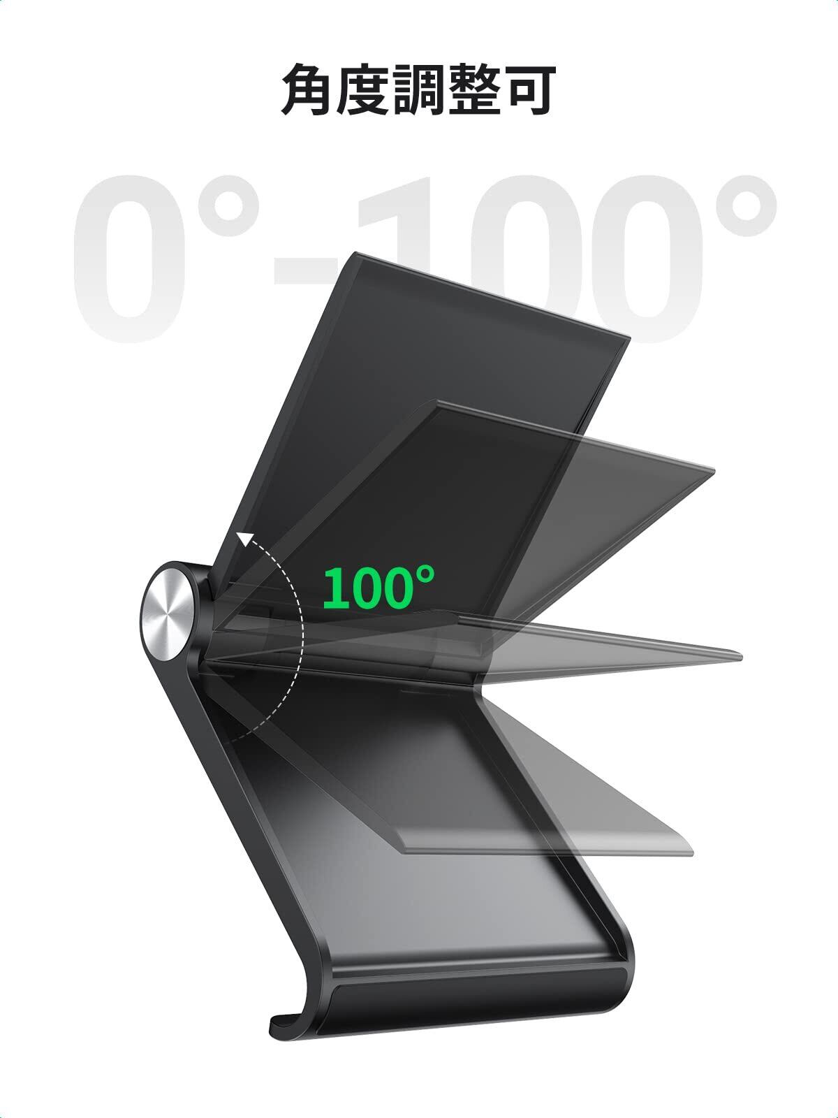 【折り畳み&角度調整可能】完全に折り畳むことができて、持ち運びがとても便利です。角度を0°~100°に調節でき、縦置きと横置きの両方に対応する10個の階段を調節できます。最適な視聴角度で動画を見える為、腕が疲れた困りを徹底的に解消します。