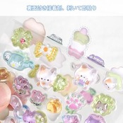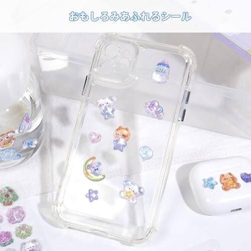 【透明ベース優位】シールのベースは透明素材なので、カラフルな包装紙やカードの柄を隠さず、ぷくぷくの形状とキラキラ感だけを自然に添えることができます。