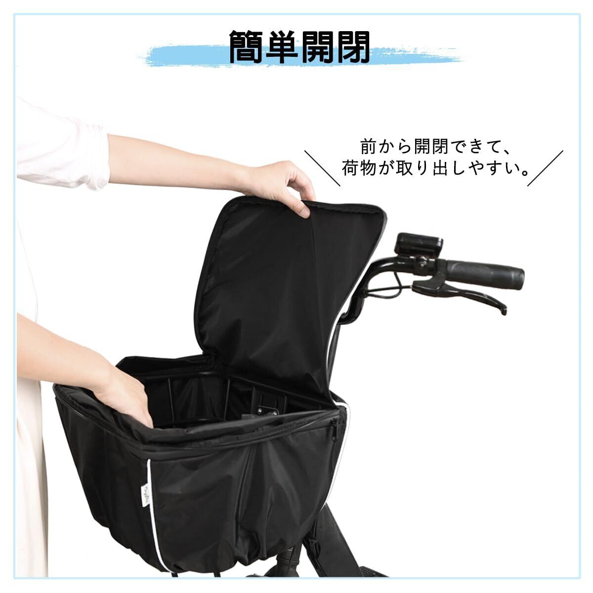 取り付け簡単:カゴにカゴカバーをかぶせて、ストラップを固定するだけで完了!