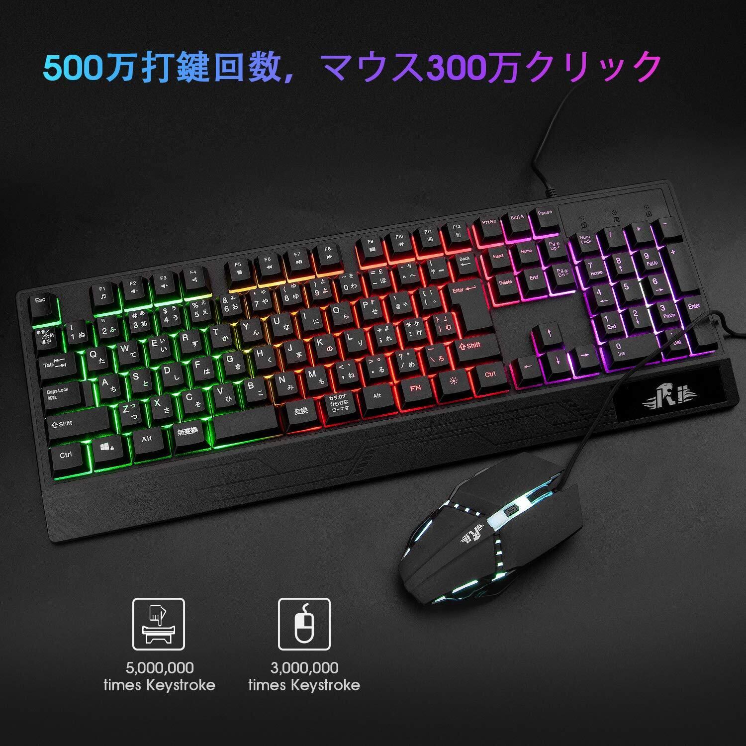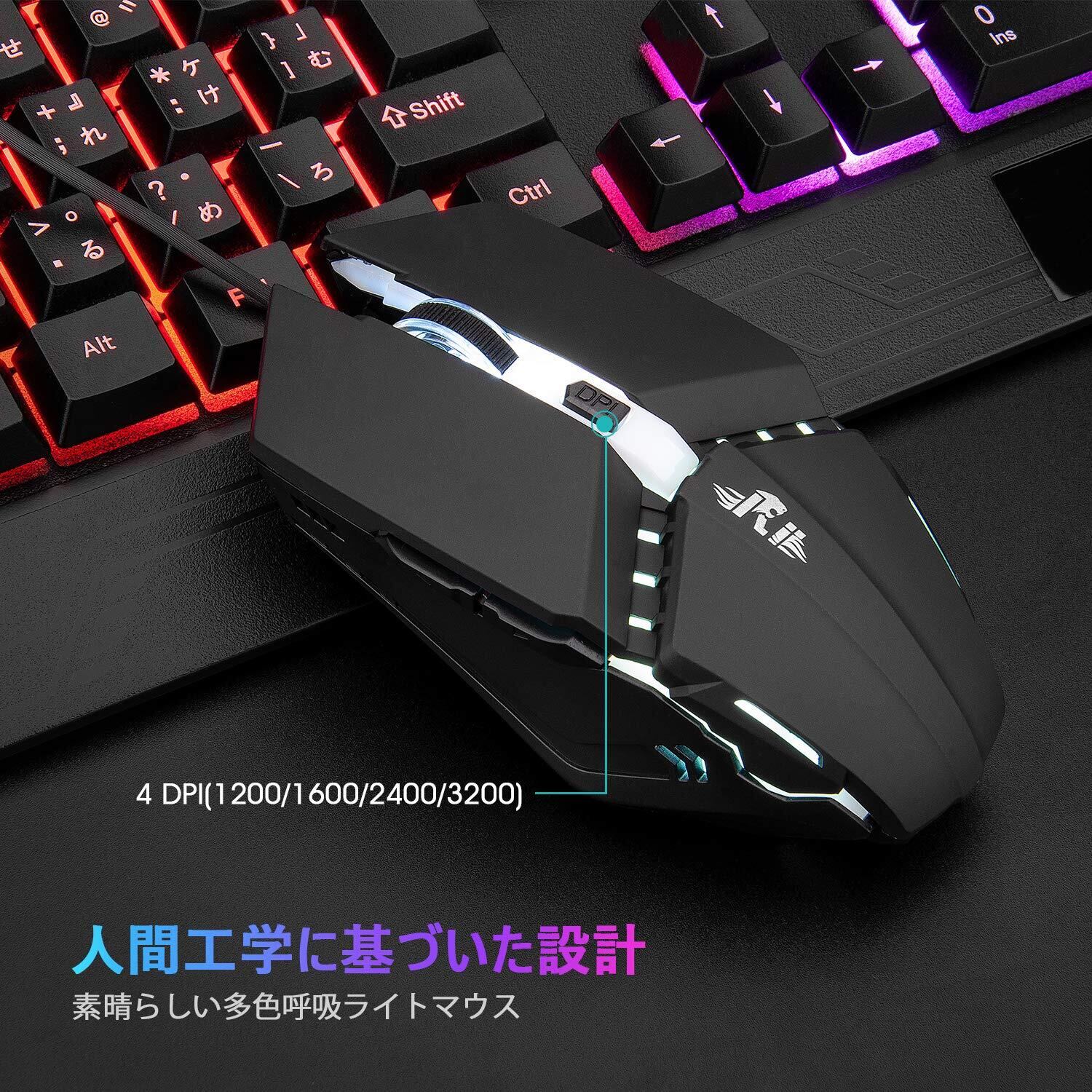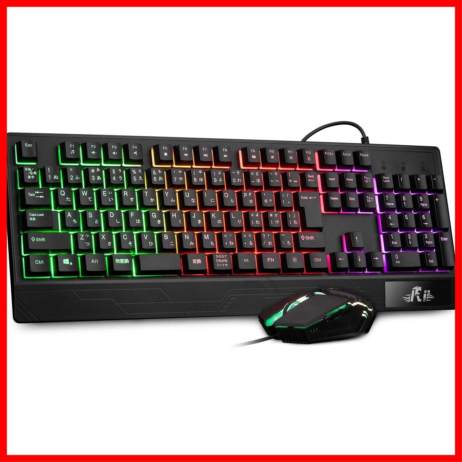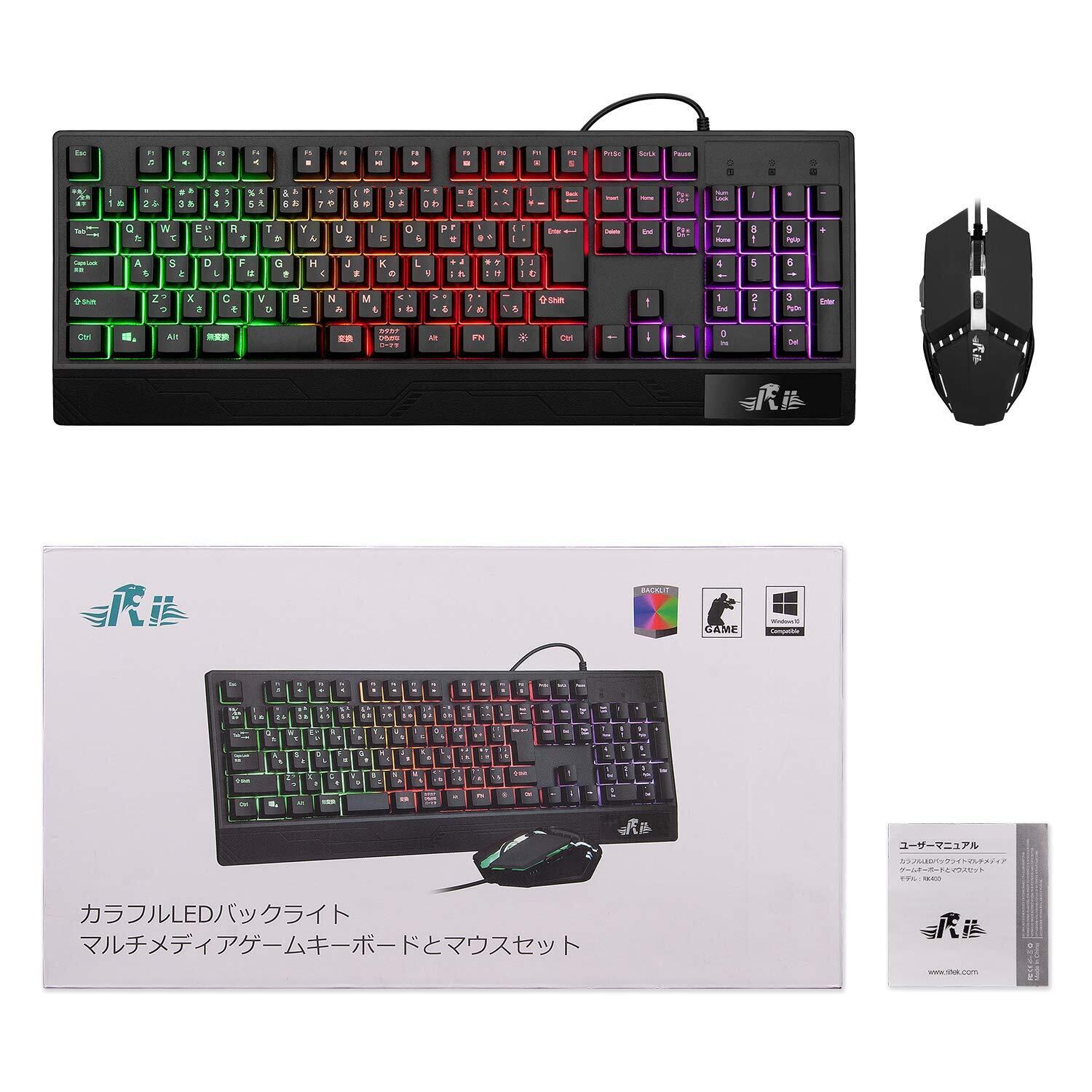 Rii ゲーミング キーボード マウス セット USB有線 RGBバックライト 109キー日本語配列 リストレスト/キー付き 4階段ゲーミングマウス 19キー防衝突 防水 Windows/VISTA/XLinuxなどシステムに対応 RK400