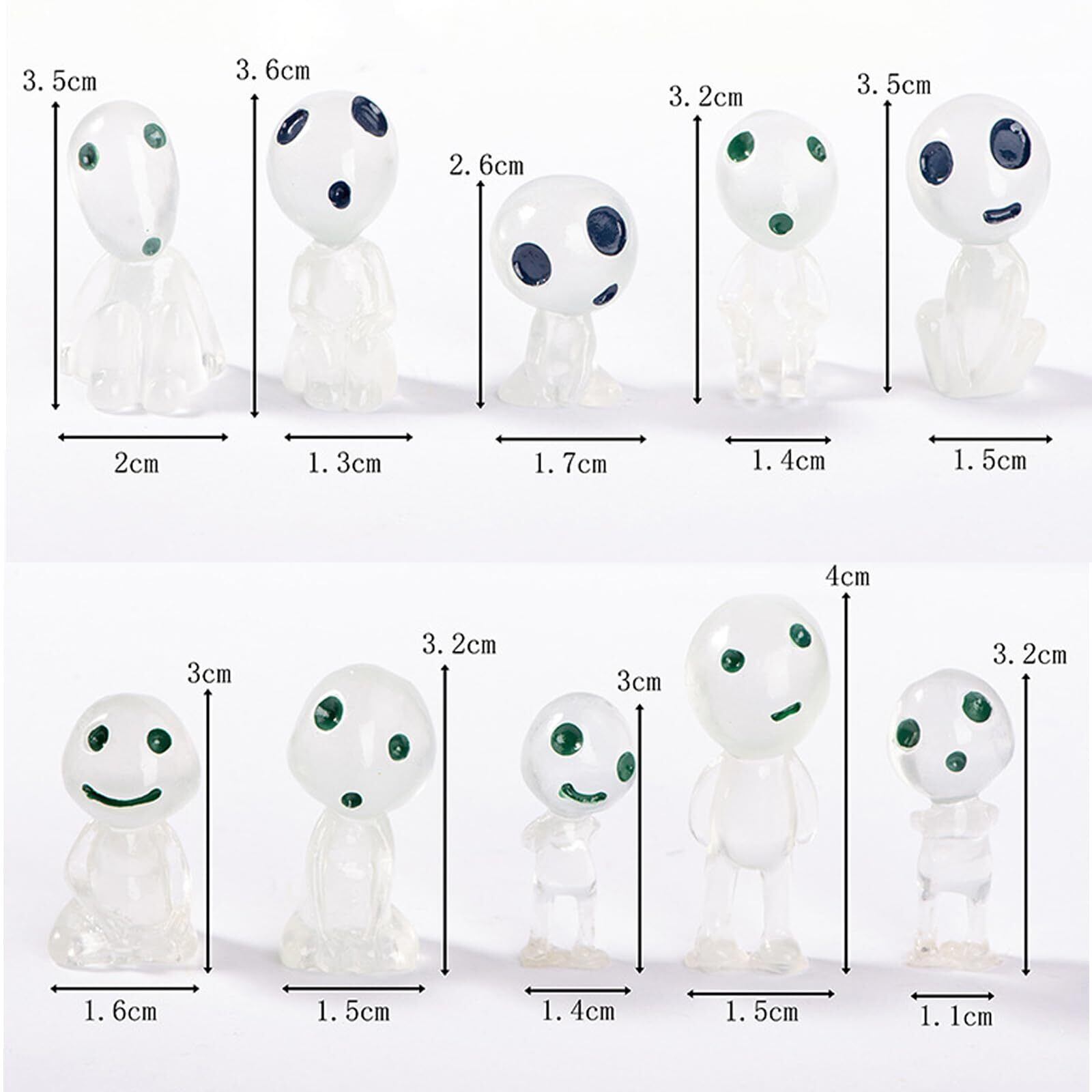 【製品仕様】10個の異なる造形のエイリアンがセットになっています。発光タイプは青色です。宇宙人は高さ約2.8 ~ 3.8センチ。