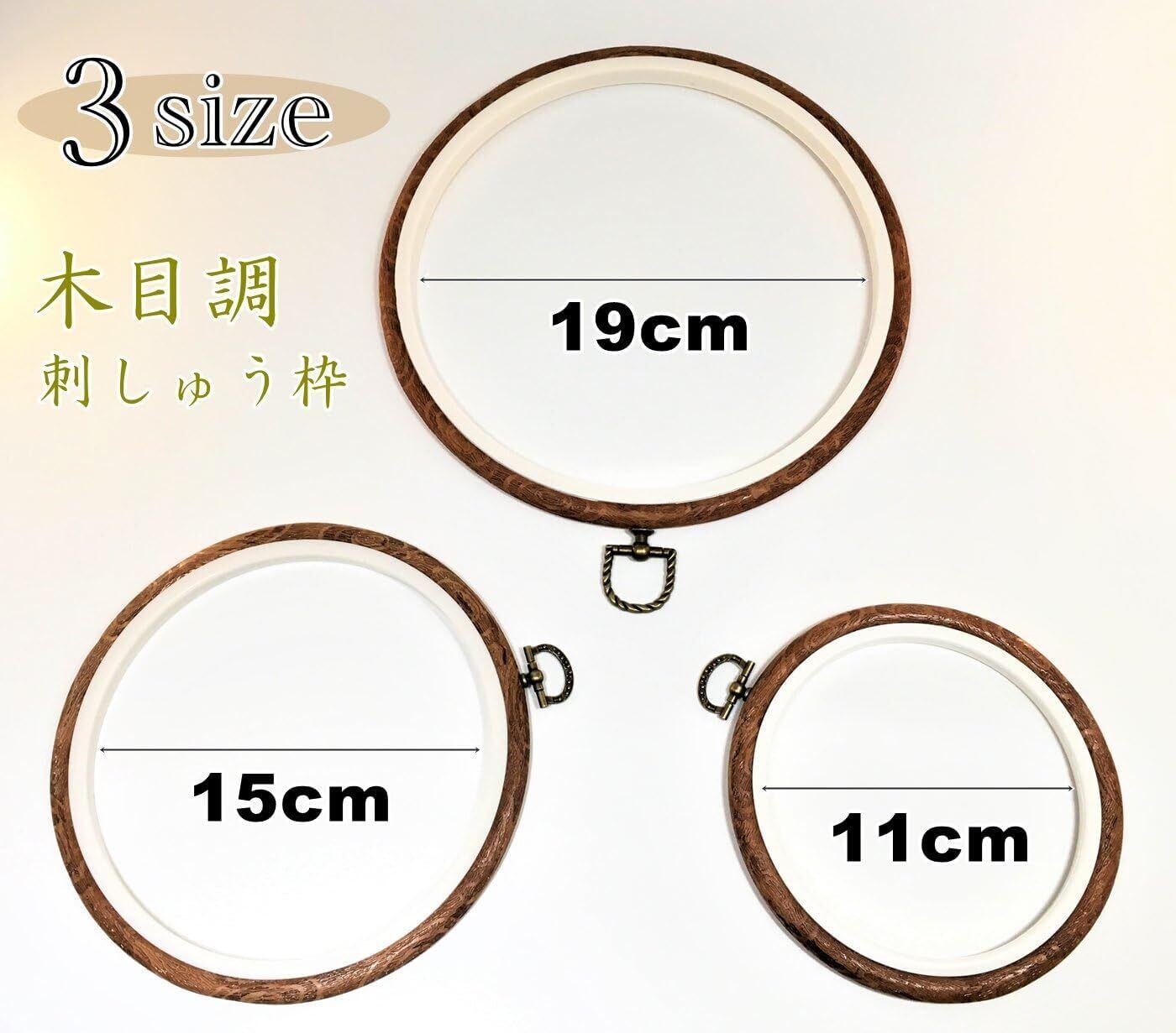 Iwamatu 刺しゅう枠 3枚セット 木目調 クロスステッチ (サイズ 内径 11/15/19cm)