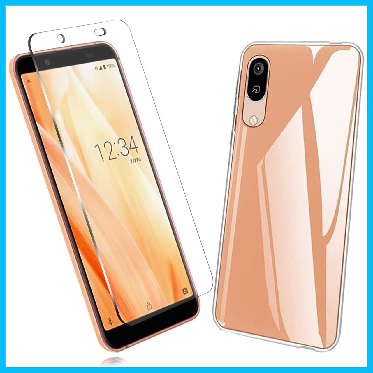 【対応機種】セット内容 :FOR AQUOS sense3 basic 用の 強化ガラスフィルム*1枚+クリアケース*1。 画面部分表面硬度9Hのガラスフィルムで、万が一フィルムが破損した場合でも、ガラスが飛び散らず張り付いた状態になります。