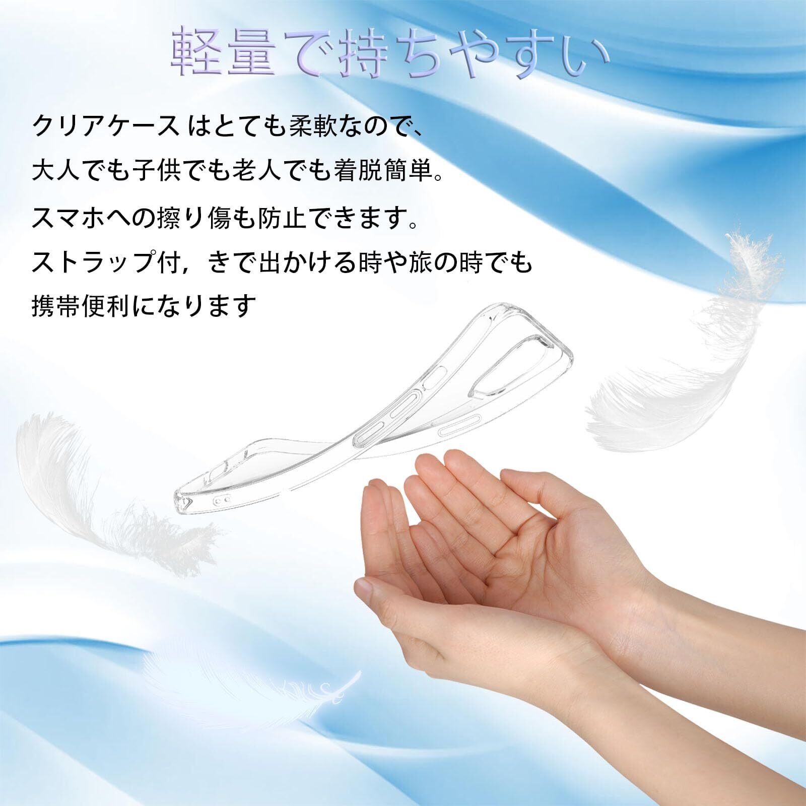 【取り外し易い】クリアケース はとても柔軟なので、大人でも子供でも老人でも着脱簡単。スマホへの擦り傷も防止できます。ストラップ付,きで出かける時や旅の時でも携帯便利になります。