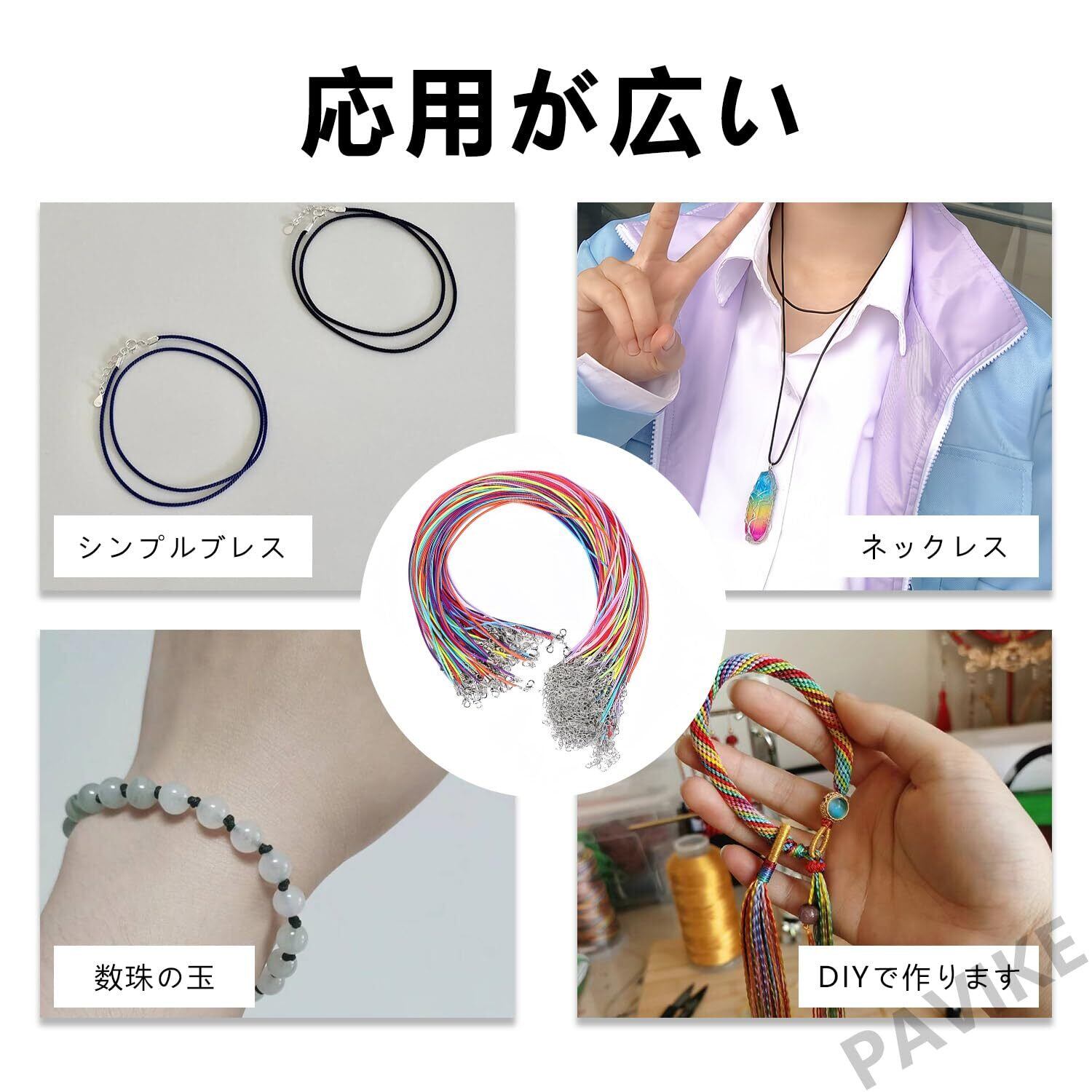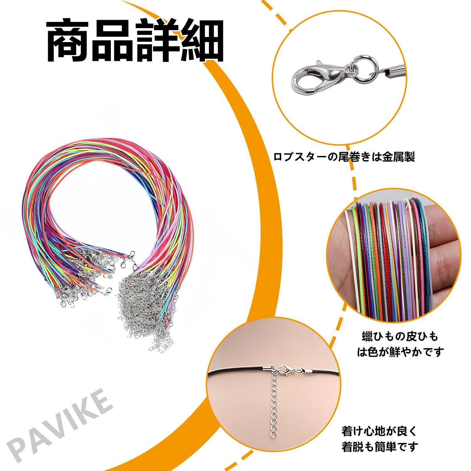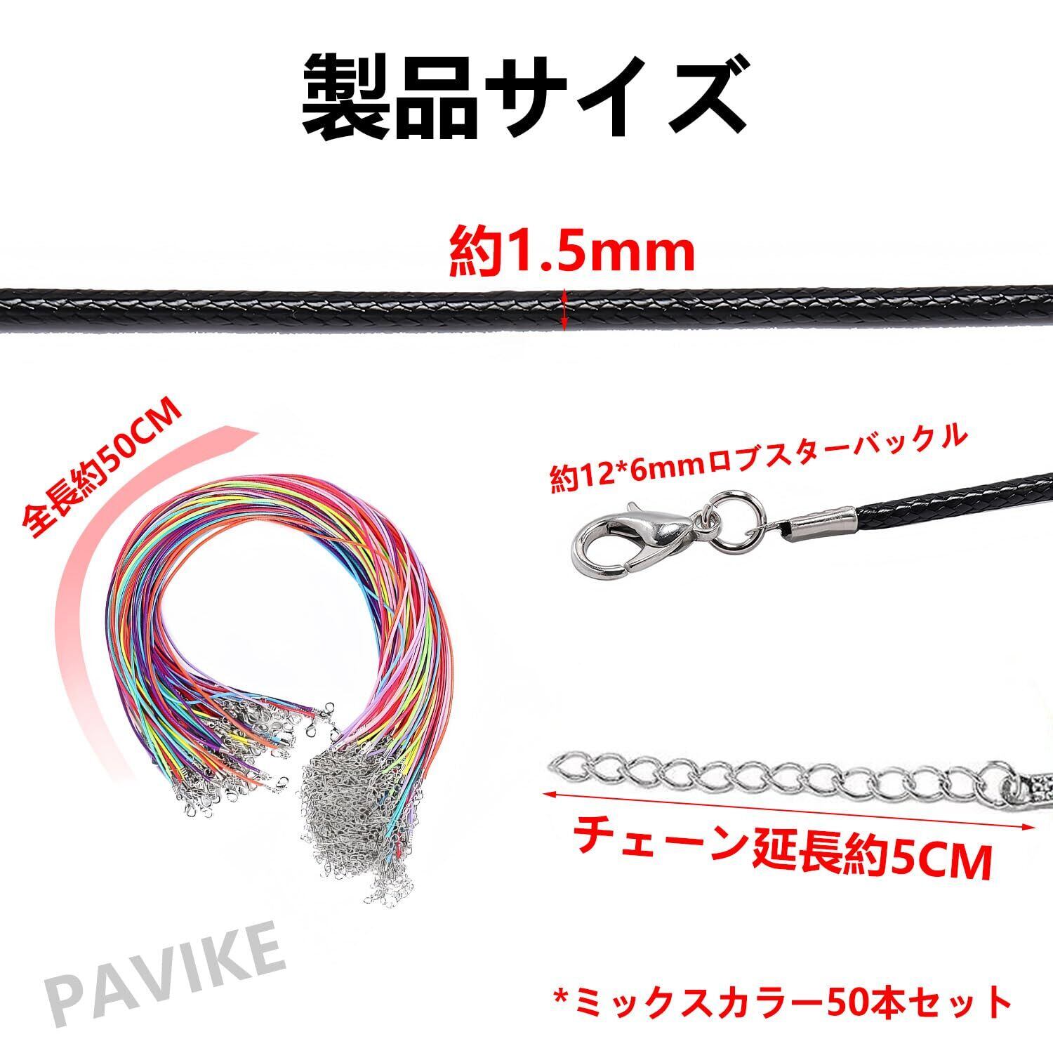 PAVIKE ネックレス チェーン 紐 ネックレスチェーン 革ひも 革紐 合皮 カラフル アクセサリー皮紐 レザー チョーカー 紐 金具付き 50本セット 長さ50cm カニカン 手芸 ハンドメイド材料