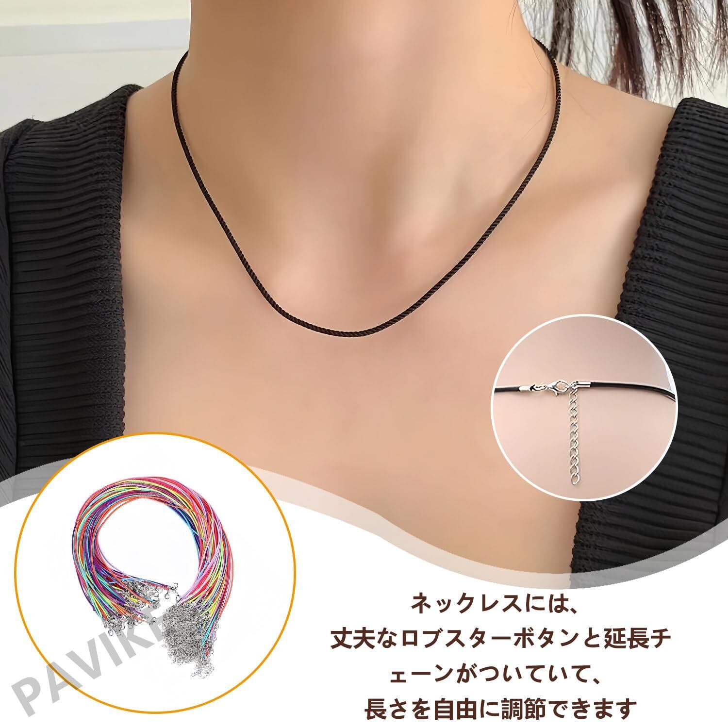 【留め金付きレザーネックレスコード50本】当社のネックレス チェーンには、留め金付きのカラフルなネックレスコード50本が含まれており、ネックレス、ブレスレット、その他のDIYジュエリープロジェクトに十分です。ジュエリー作り用品として、お買い得なバルクネックレスチェーンです。