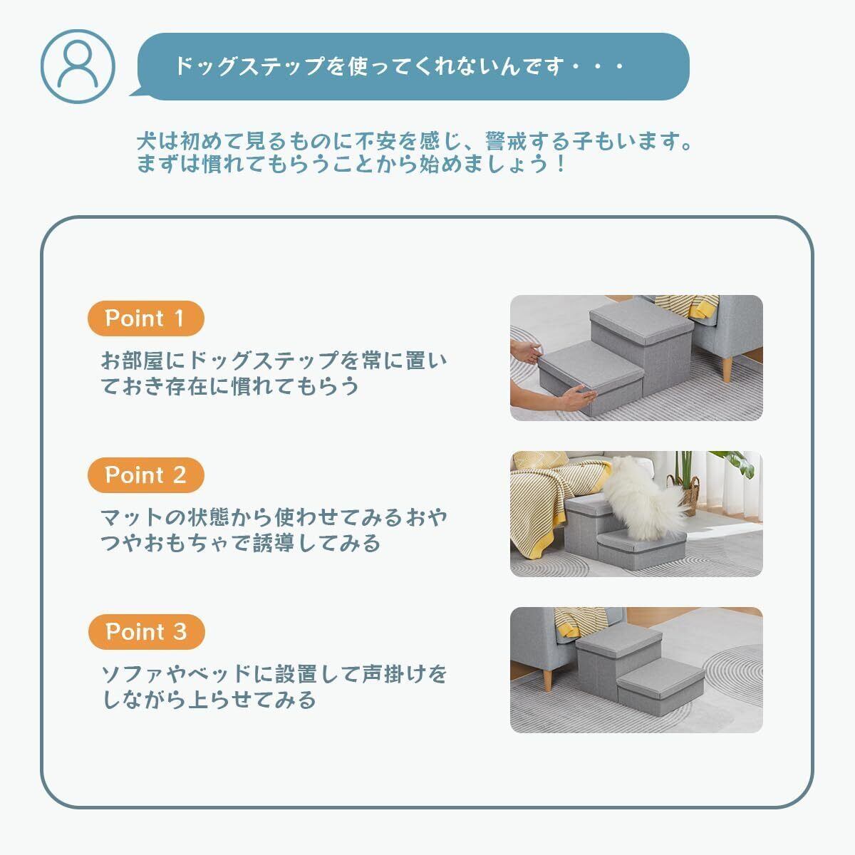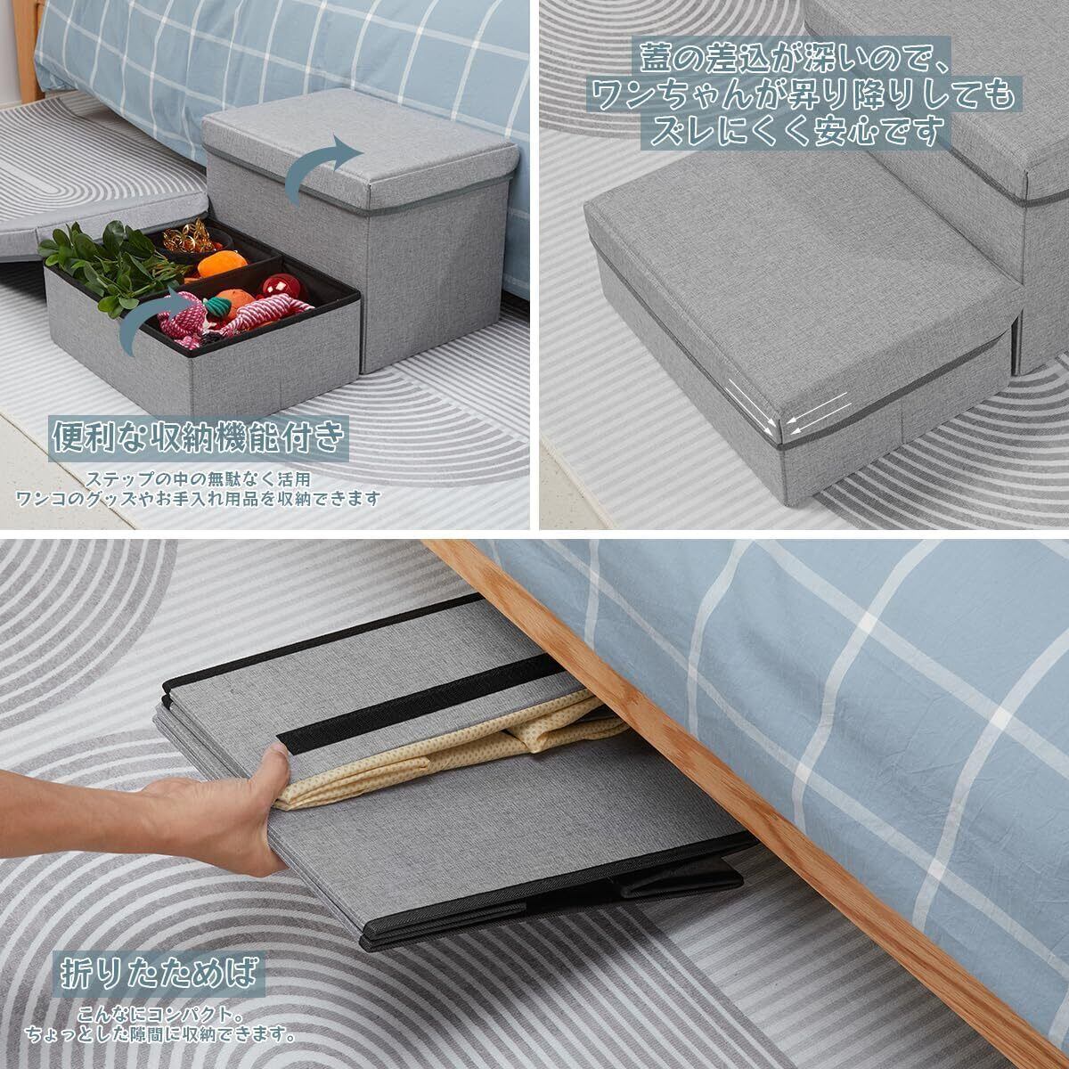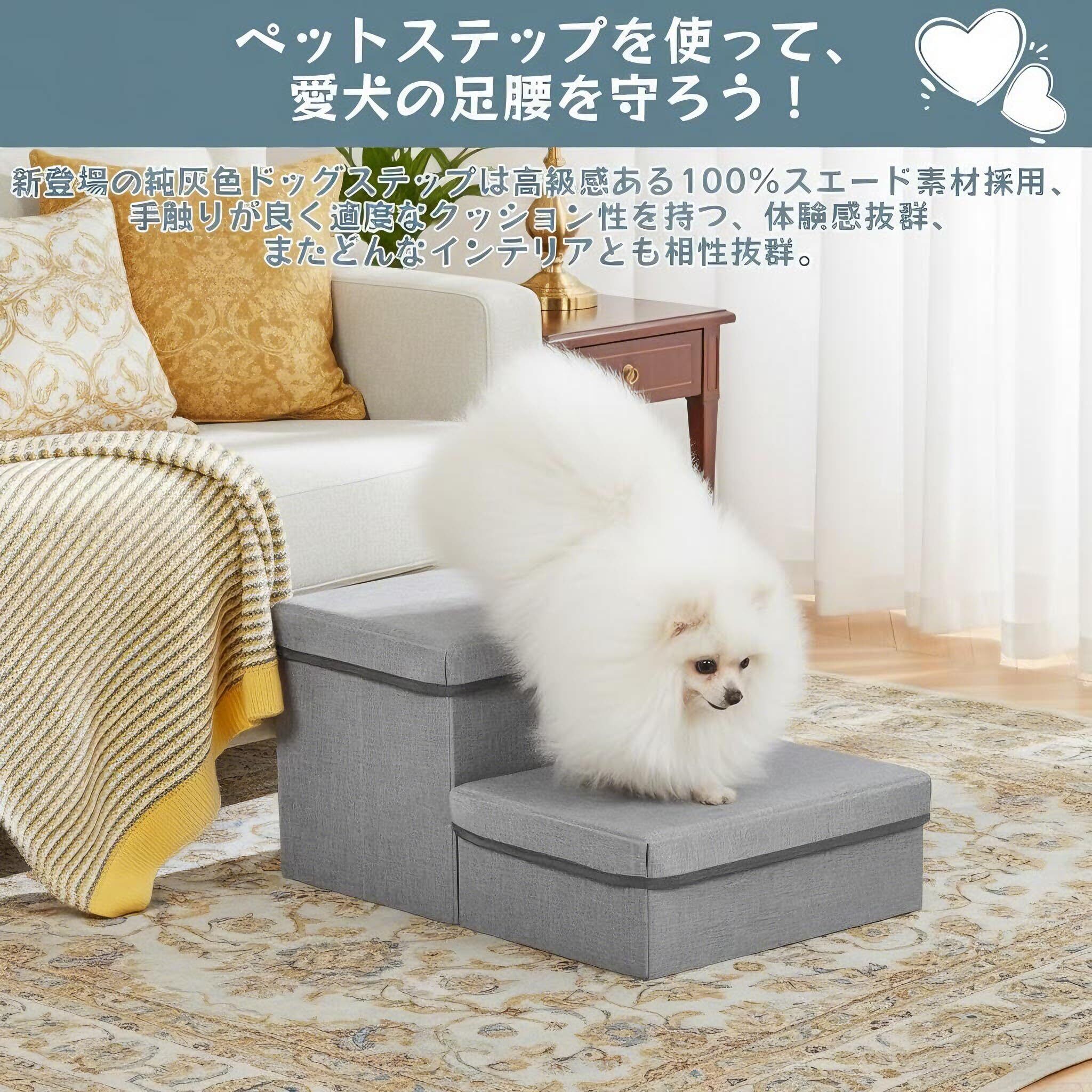 【2階段設計・収納でき】:ステップの中の無駄なく活用、ワンコのグッズやお手入れ用品をスッキリ収納できます。