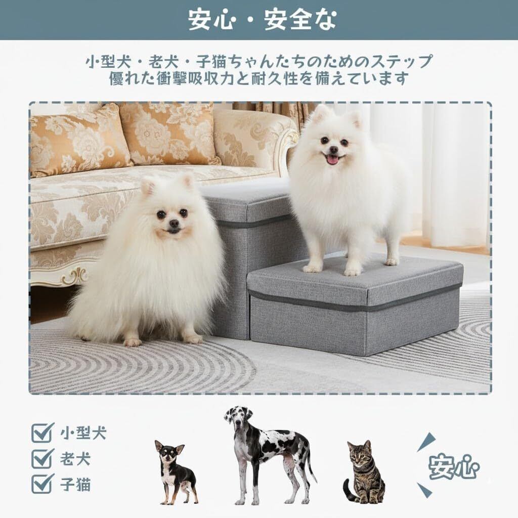 ドッグステップ 犬 ペット用階段 2段 奥行大幅に広く改善 ペット ステップ 耐荷重30KG 折り畳収納 ヘルニア 小型犬 老犬介護 ケガ防止 滑り止め (2段-アップグレード版灰) (2段-グレー)