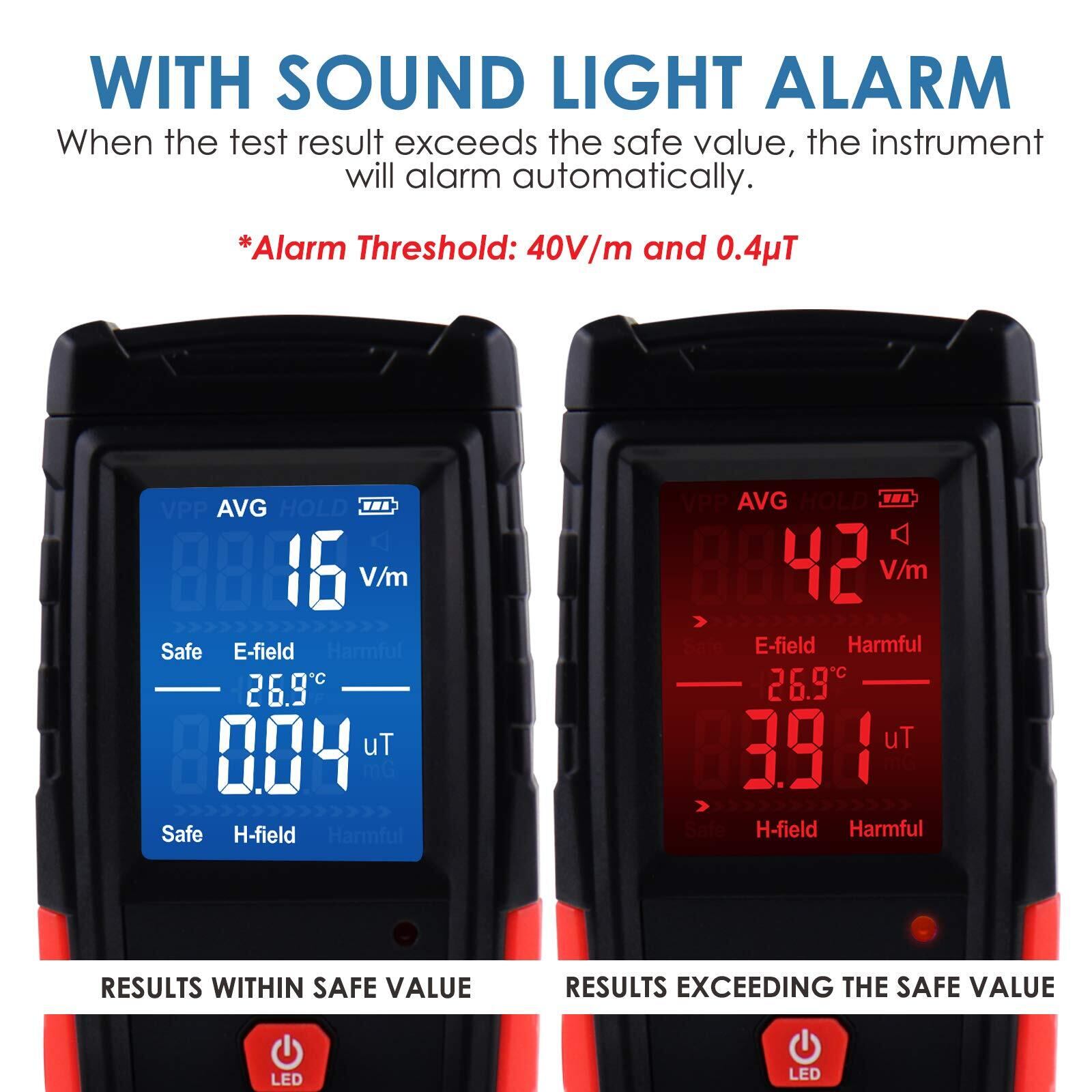 ライトサウンド、テスト結果が安全値を超えると、機器は自動的にアラームを発します。
