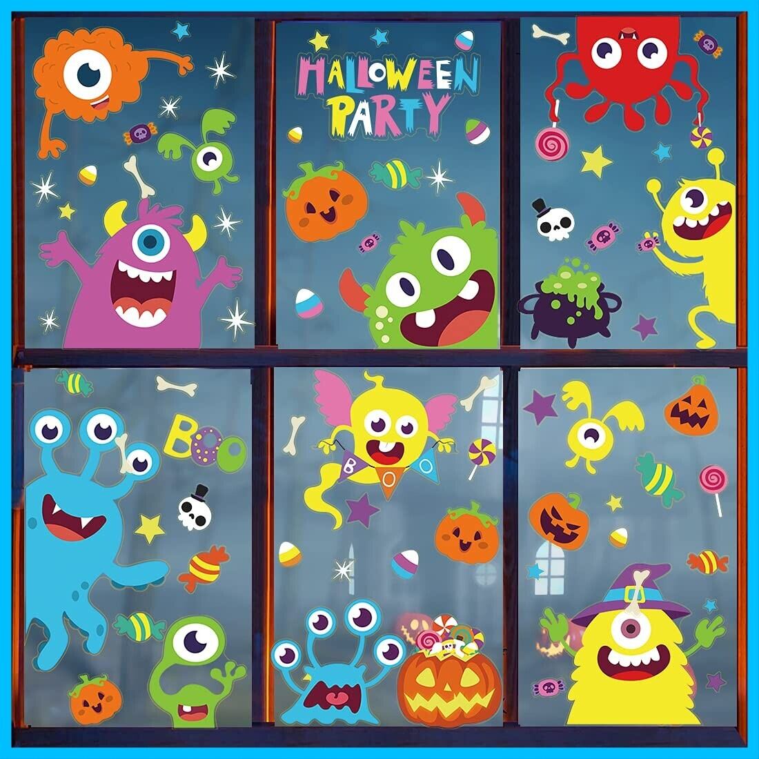 DERAYEE ハロウィン 静電 ステッカー ウォール 両面 モンスター 95pcs入り 剥がせる 汚れない 怪獣 静電気シール 窓(片目の怪獣)