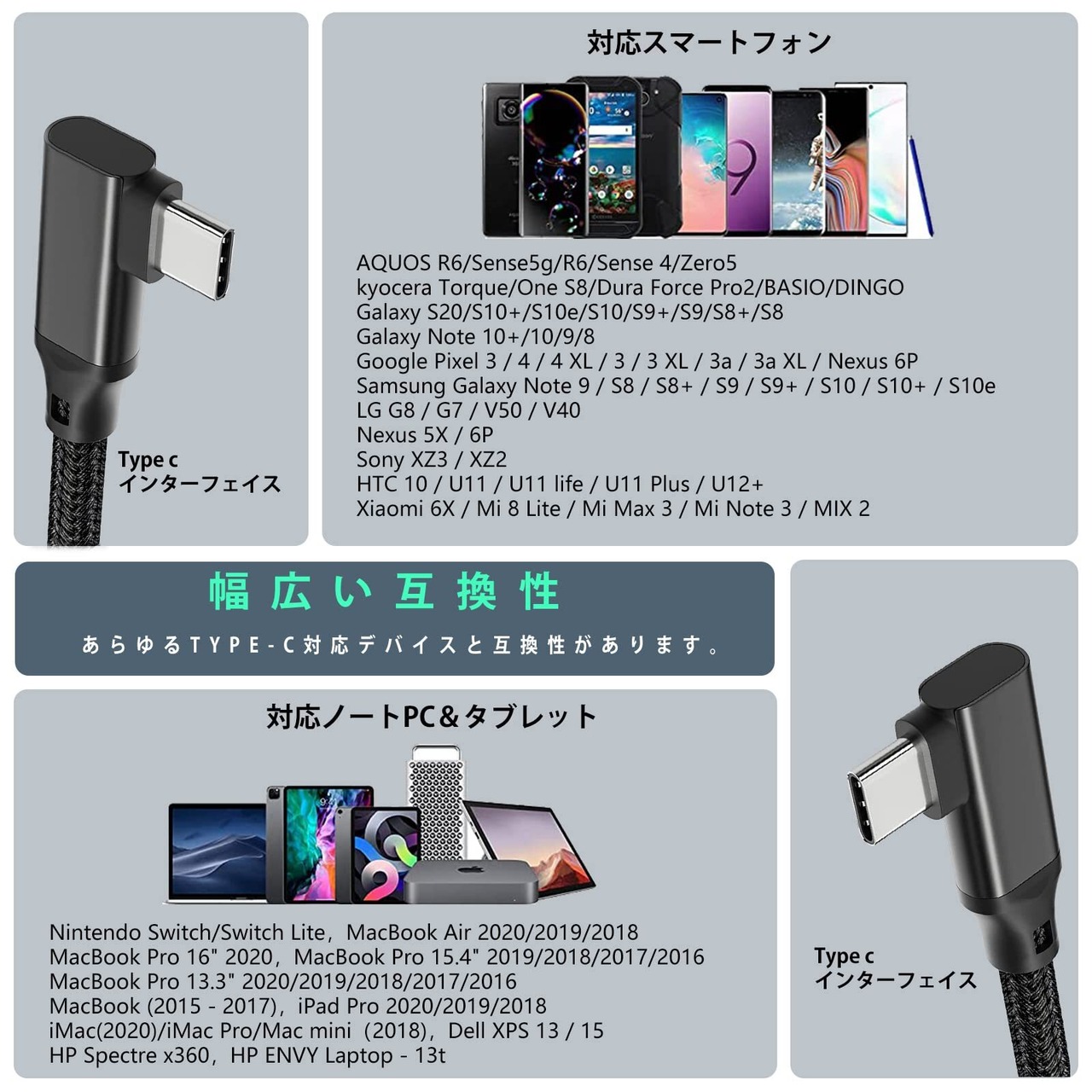 USB 3.2 Type C ケーブル L字 (1m, ブラック) SLEIJAOOEUSB 3.2 Gen 2x2 タイプc ケーブル MacBook/MacBook Pro/iPad Pro/Nintendo Switch/Xperia/Galaxy/Google Pixel等Type-C機種対 超高耐久