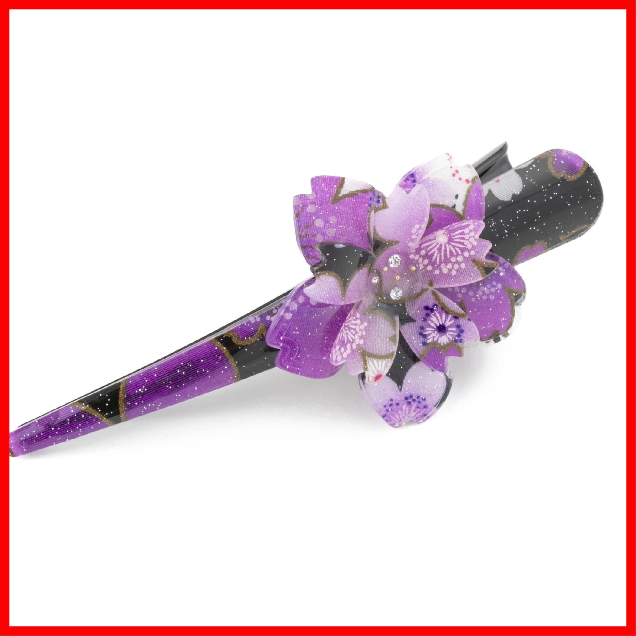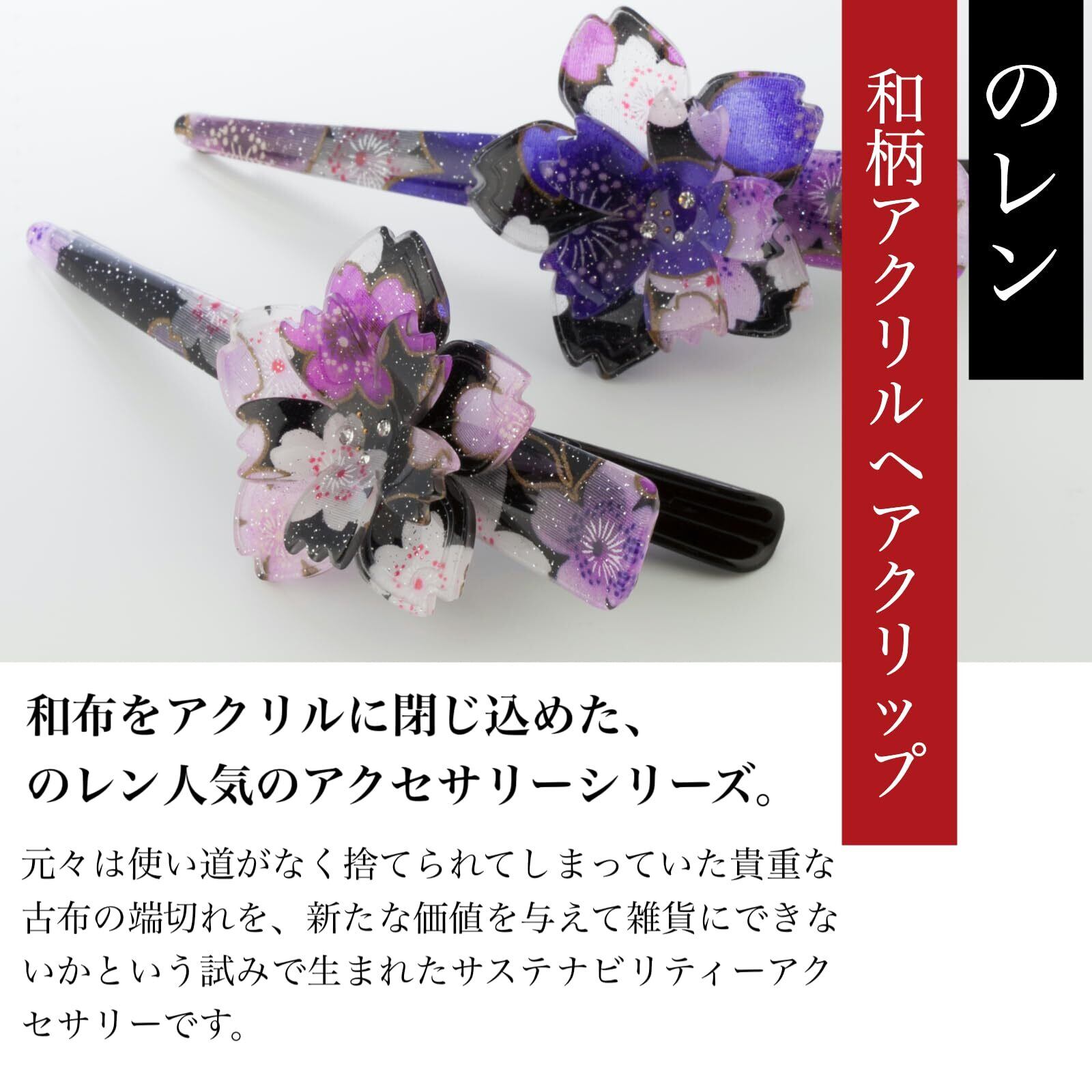 のレン くちばしクリップ ヘアクリップ (145サクラ 大/パープル) コンコルドクリップ ダッカール ヘアアクセサリー 髪留め 髪飾り/和風 まとめ髪用 入学式 卒業式 パーティー 七五三 発表会 卒園式 入園式