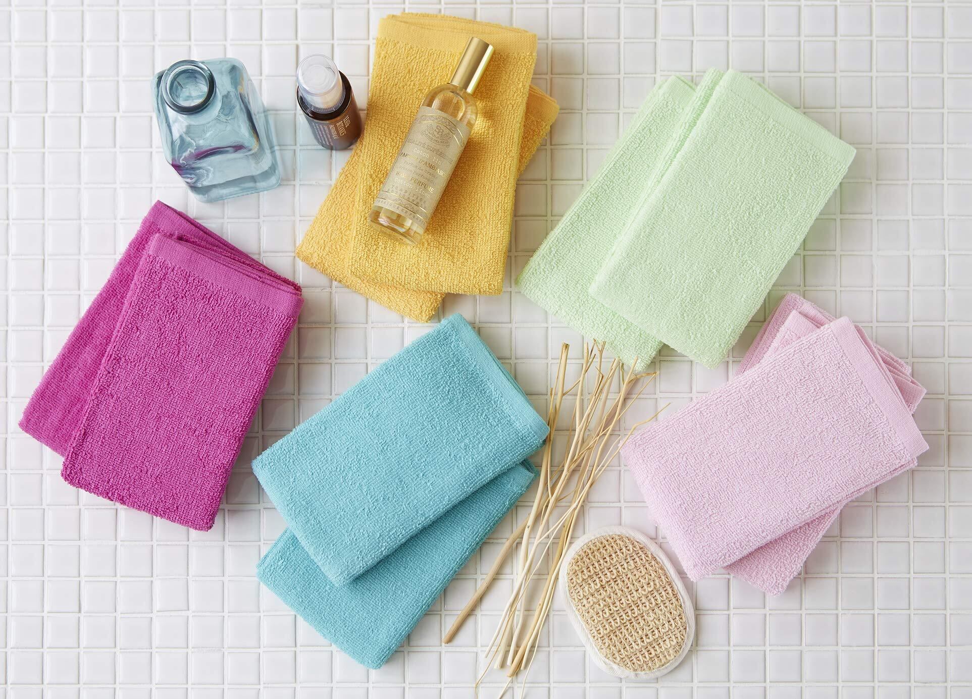 【ガムシャタオル】 1枚あたり約65g なので薄手です。 軽くて扱いやすく、持ち運びにもピッタリです。 使う場所を選ばないので、キッチン・洗面所・お風呂場など、いろんなシーンで活躍してくれます。 カラーバリエーションが豊富で、フェイスタオルは全部で22色! 場所や用途で色分けしたり、使う人によって色分けしたりできるので、衛生的に安心してお使い頂けます。 気分で色を使い分けるのもおすすめです